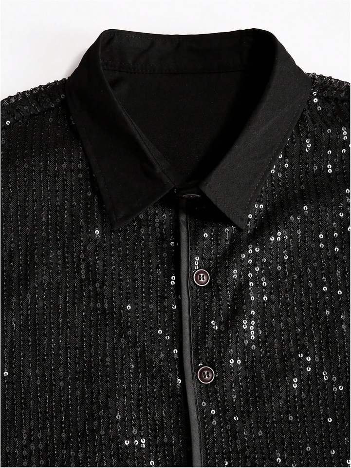 เสื้อเชิ้ตปาร์ตี้ลำลองผู้ชาย แต่งเลื่อม แขนสั้น สไตล์เรโทรดิสโก้ ผ้าโพลีเอสเตอร์ 100% ระบายอากาศดี แฟชั่นสำหรับใส่เที่ยวกลางคืน