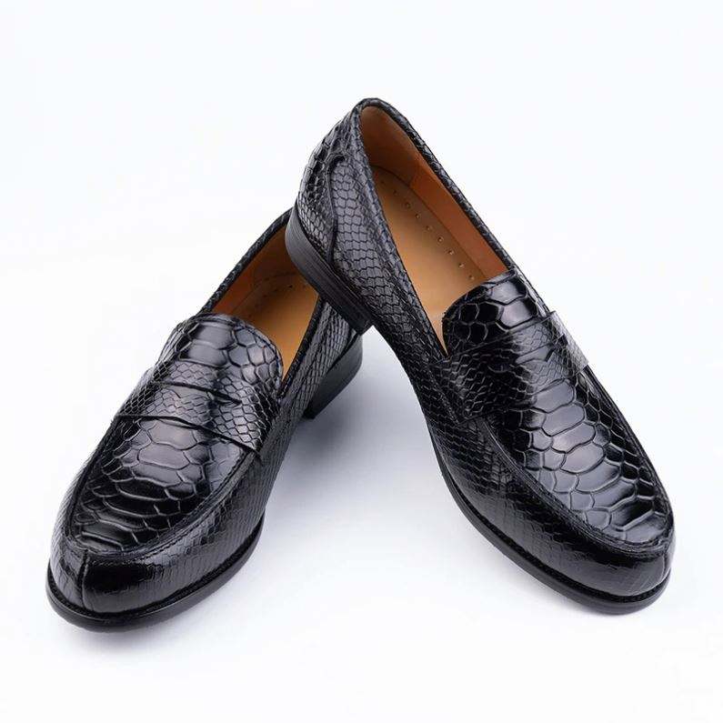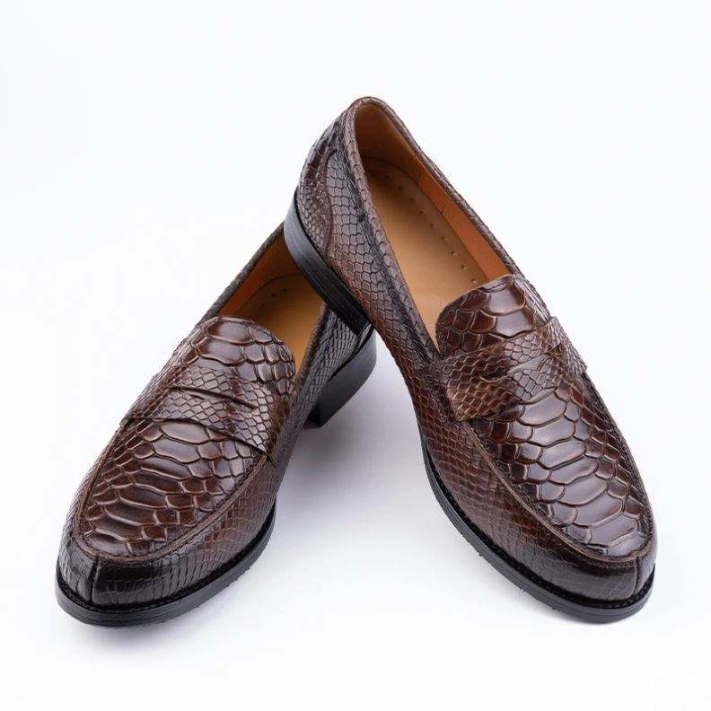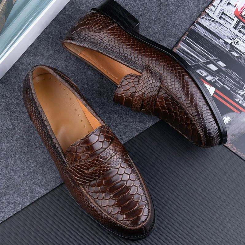 ชุดเดรสหนังพิมพ์ลายงูของผู้ชายรองเท้าหนังวัวแท้แบบผูกเชือกสวมใส่สบายเหมาะสำหรับใส่ในสำนักงานทุกวัน