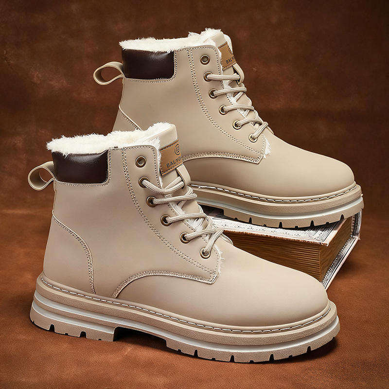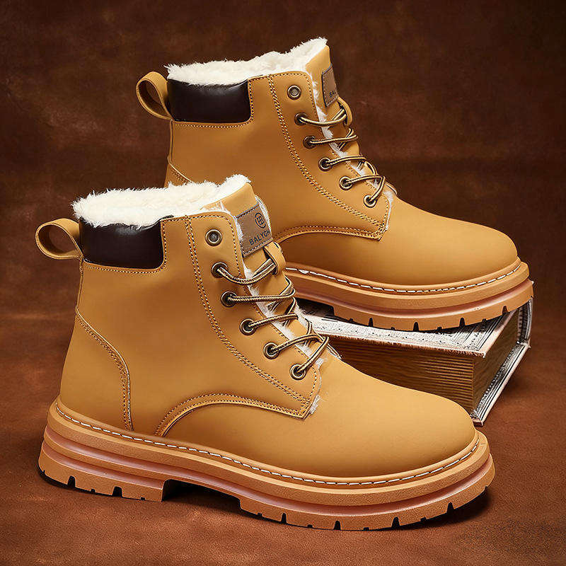 รองเท้าบูทหิมะผู้ชาย หุ้มข้อสั้น บุขนกำมะหยี่ อุ่น กันลื่น พื้นยาง PVC ด้านบน แฟชั่นฤดูหนาว ทันสมัย ไซส์ใหญ่