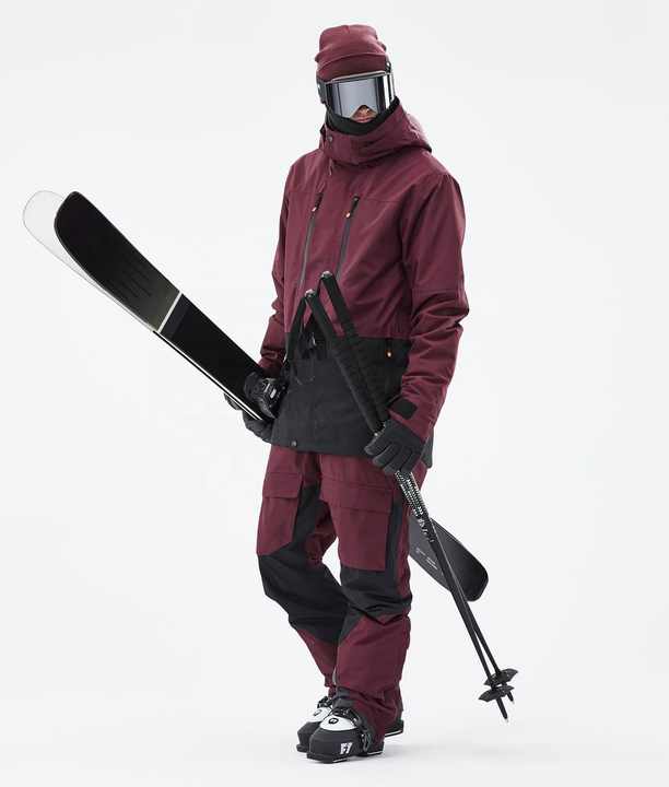 ชุดสกีสโนว์บอร์ดสำหรับผู้ชายปี 2026 กันน้ำ ระบายอากาศได้ดี สีแดงเบอร์กันดี/สีดำ ชุดสโนว์บอร์ดสำหรับผู้หญิงและผู้ชาย เสื้อแจ็คเก็ตสกีแบบมีฉนวนกันความร้อน