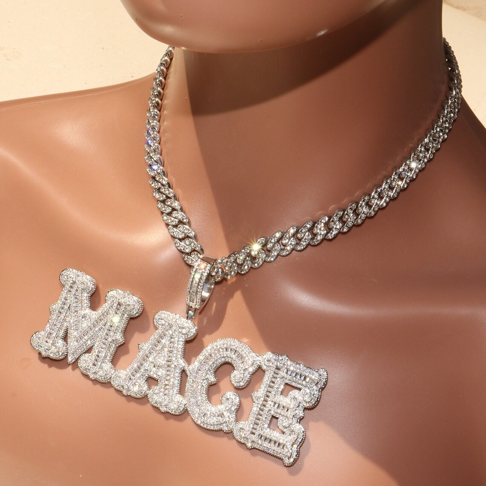 จี้ VVS Moissanite สีทอง14K/18K ที่กำหนดเองได้สไตล์ฮิปฮอปโซ่น้ำแข็งชื่อโซ่เครื่องทดสอบเพชรผ่านเสน่ห์สุดเก๋