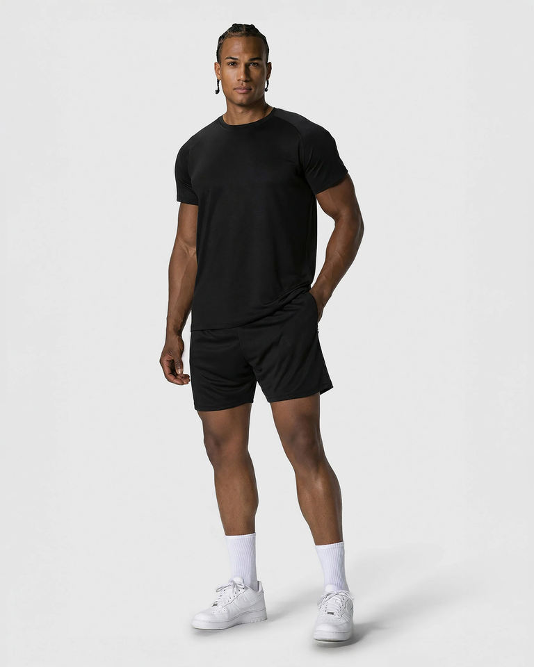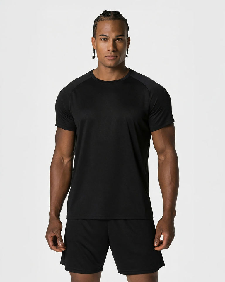 เสื้อยืดคอกลมสีดำล้วนสำหรับผู้ชาย ทรงปกติ สไตล์สตรีทพิมพ์ลายสกรีน แขนสั้น ระบายอากาศได้ดี ผ้าฝ้าย 100%