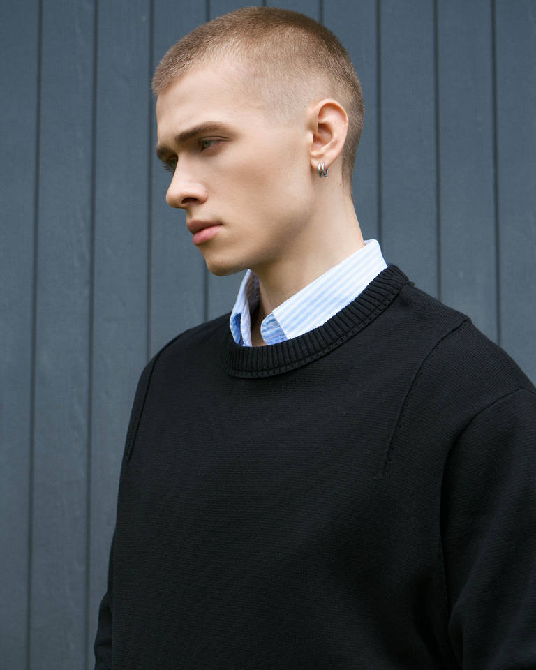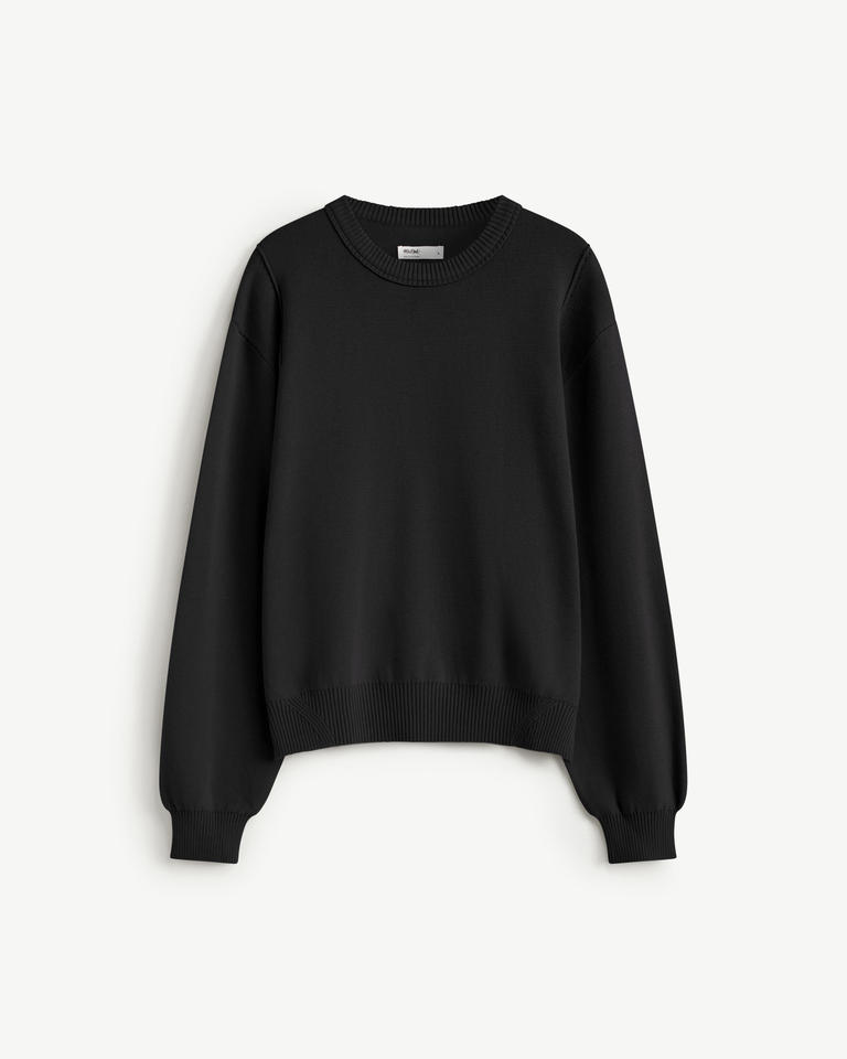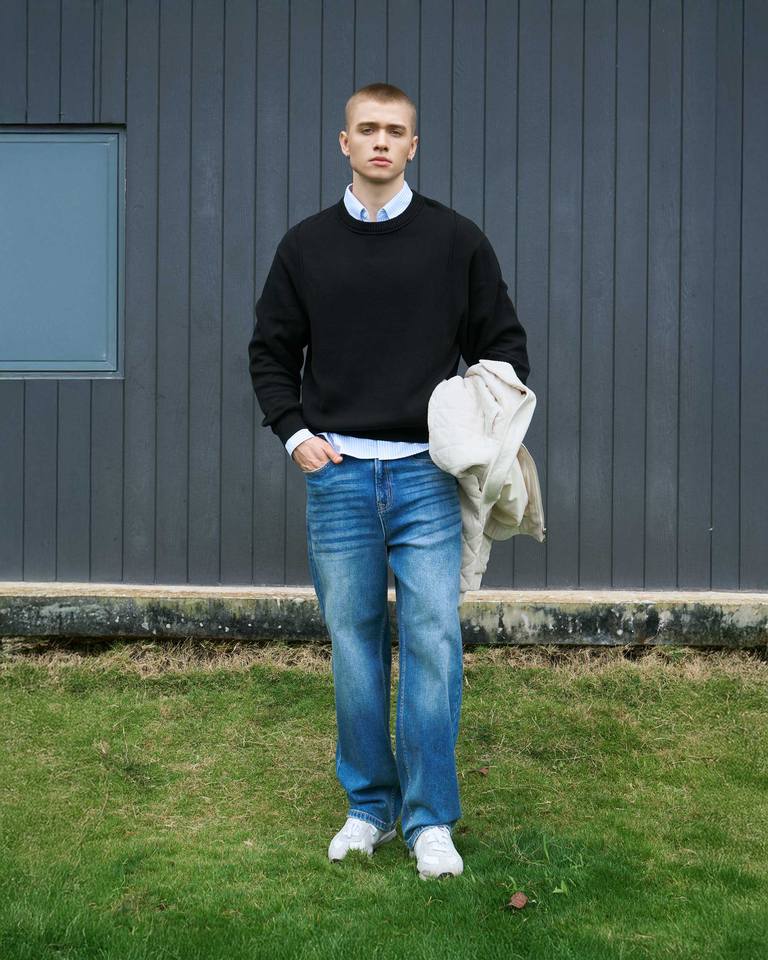 เสื้อสเวตเตอร์ถักแขนยาวผ้าเรยอนสำหรับผู้ชาย ระบายอากาศได้ดี สวมใส่สบาย ทรงหลวม มีโลโก้ที่ด้านหลังคอ ผลิตโดย Routine Vietnam