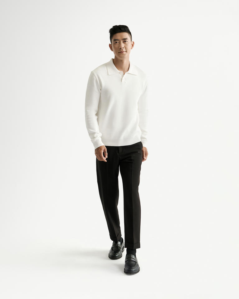 เสื้อโพลีสีกาแฟถักแขนยาวลำลองสำหรับผู้ชายสำหรับเสื้อเชิ้ตมีโลโก้คอเสื้อเข้ารูปแบบเวียดนาม