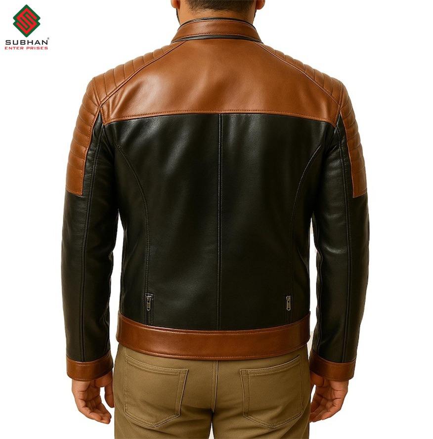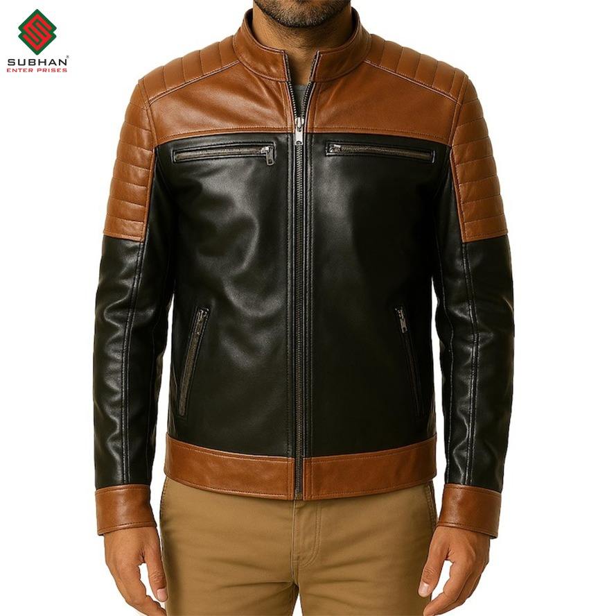 เสื้อแจ็คเก็ตหนังแท้สีน้ำตาลดำสำหรับผู้ชาย สไตล์ไบค์เกอร์ บอมเบอร์ คาเฟ่ เรเซอร์ ลำลอง สำหรับฤดูหนาว