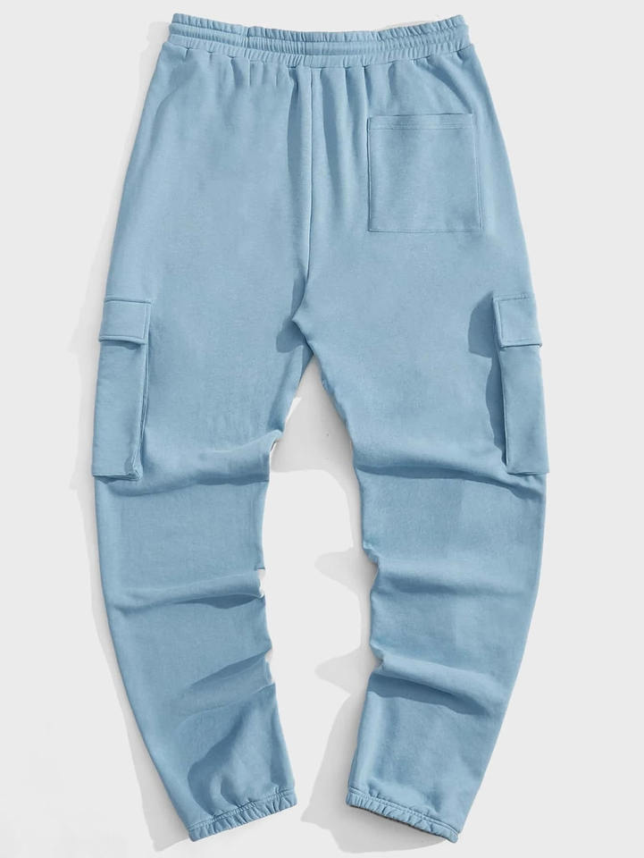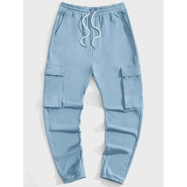 กางเกงขายาวผู้ชายสีพื้น ผ้าฝ้าย 100% เนื้อหนา เอวยางยืด มีเชือกผูก กระเป๋า มีเชือกผูกเอว สไตล์ลำลอง