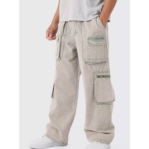 กางเกงคาร์โก้สีพื้นผู้ชาย 2025 กางเกงหลายกระเป๋าสำหรับกิจกรรมกลางแจ้ง กางเกงทำงานผู้ชายขายส่ง