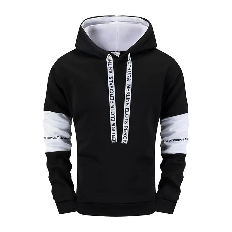 เสื้อสเวตเตอร์ลำลองสีพื้นของผู้ชายกางเกงมีฮู้ดแบบชิ้นเดียวสำหรับกีฬากลางแจ้งและจ๊อกกิ้งโลโก้ใหม่ที่โดดเด่น