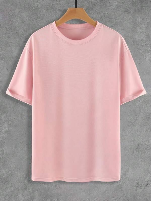 เสื้อยืดคอกลมผู้ชาย สีพื้น ออกแบบเองได้ ผ้าเจอร์ซีย์คอตตอนสองชั้น 100% ผ้าฝ้ายถัก สวมใส่สบาย