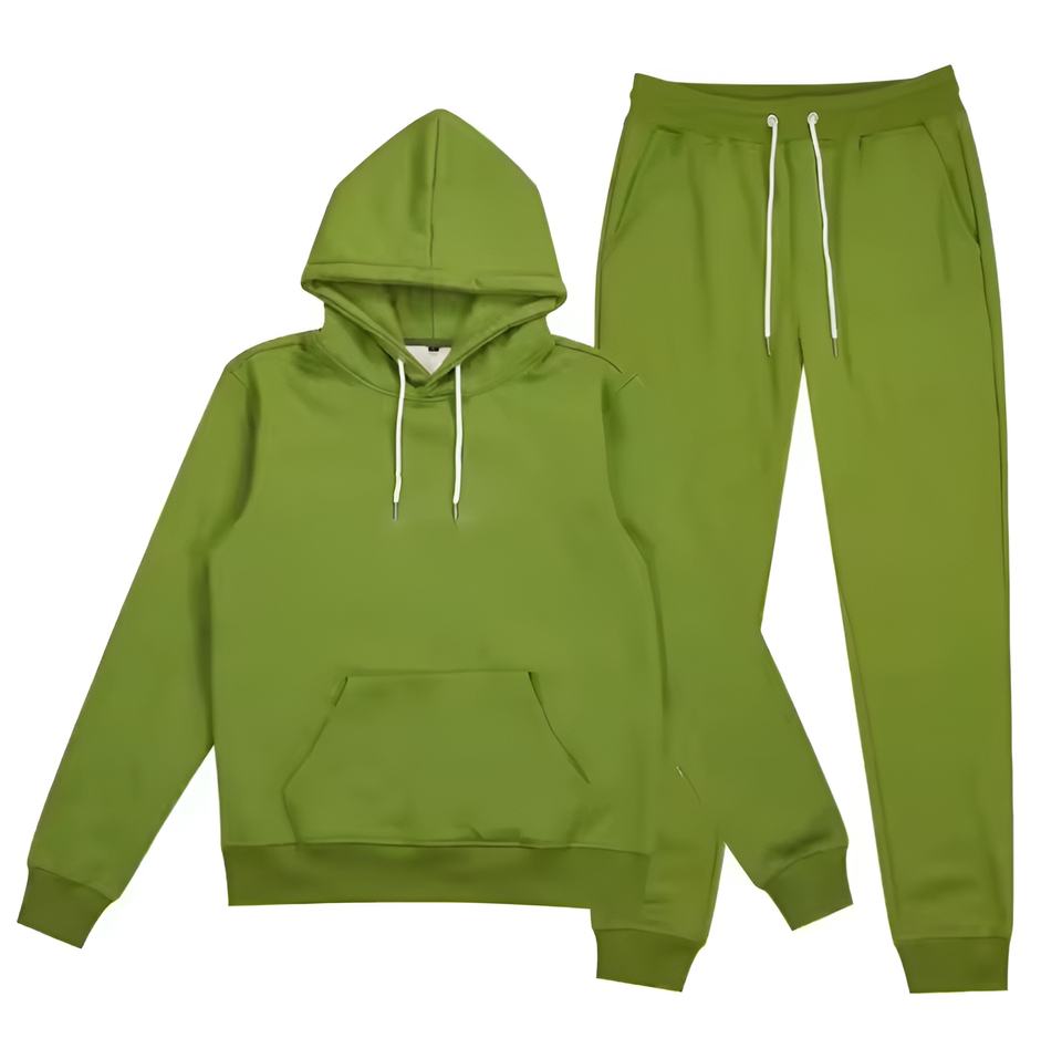 ชุดวอร์มผู้ชายสีพื้นผ้าฟลีซ เสื้อฮู้ดและกางเกงจ็อกเกอร์ สไตล์ลำลอง สตรีทแวร์ ทรงหลวม แฟชั่นคนเมือง ขายส่ง OEM สำหรับฤดูหนาว