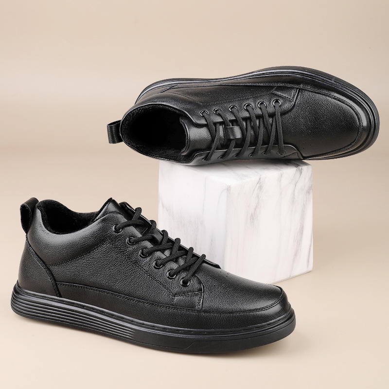 รองเท้าหนังแท้สีพื้นสำหรับผู้ชาย แฟชั่นใหม่รับฤดูใบไม้ผลิและฤดูใบไม้ร่วง ดีไซน์ทันสมัย เข้าได้กับทุกชุด ระบายอากาศได้ดี ปิดแบบผูกเชือก พื้นรองเท้านุ่ม สวมใส่สบาย เหมาะสำหรับเล่นกีฬาและใส่ลำลอง