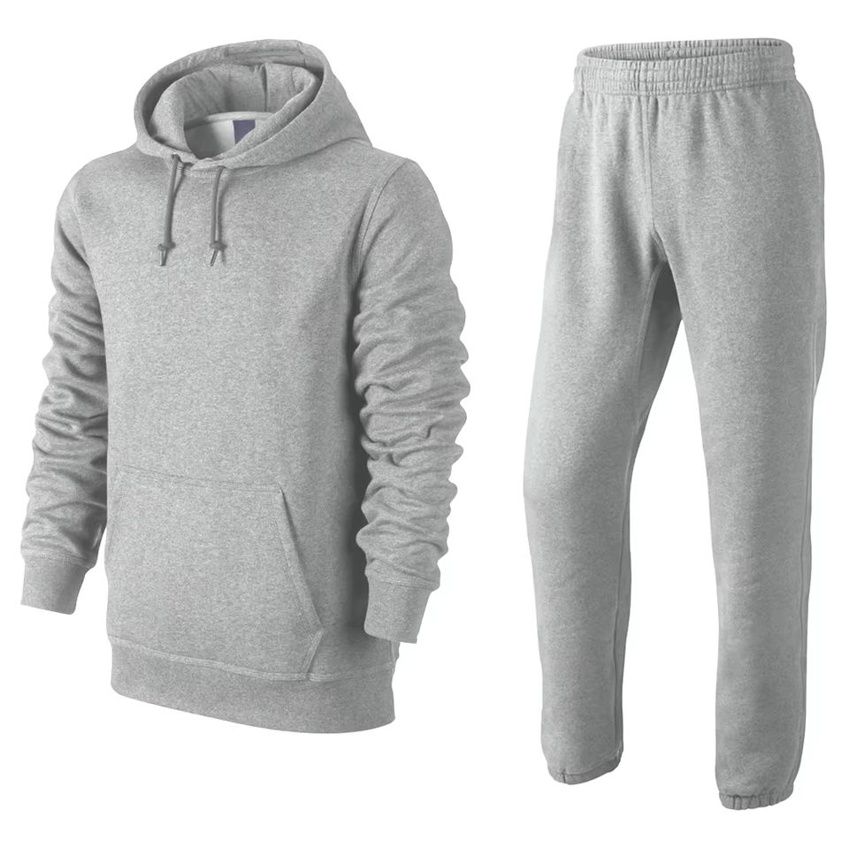 ชุดวอร์มผู้ชายสีพื้นแบบมีฮู้ด เสื้อฮู้ดและกางเกงจ็อกเกอร์ ผ้าฝ้ายฟลีซ 100% แห้งเร็ว ระบายอากาศได้ดี เหมาะสำหรับเล่นกีฬาในฤดูหนาว