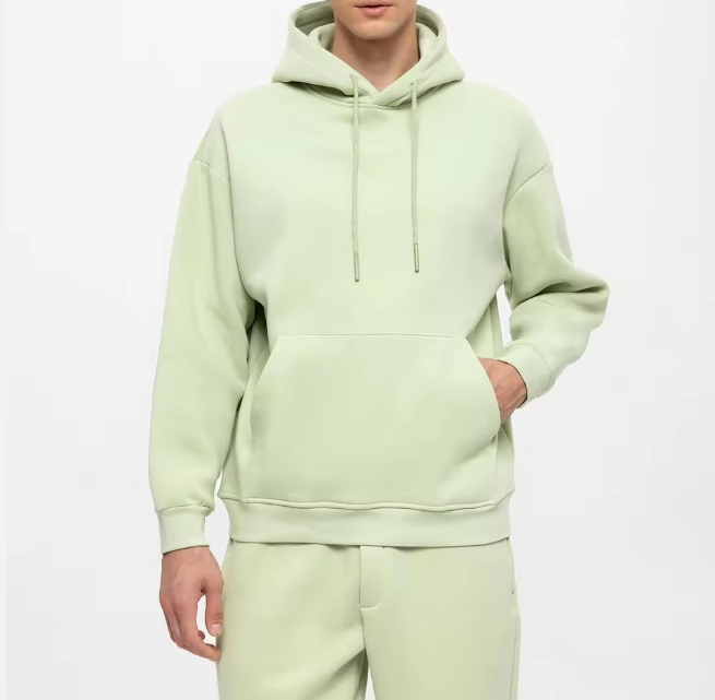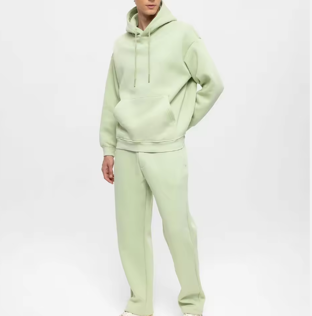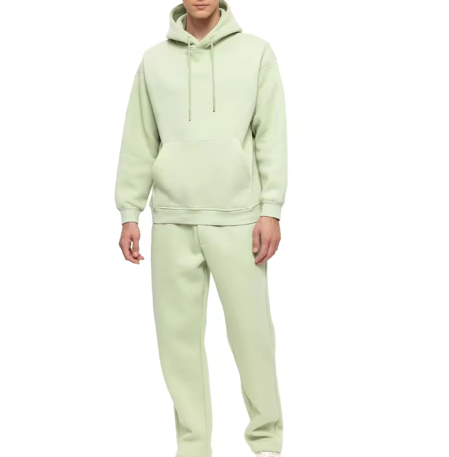 ชุดวอร์มมีฮู้ดสีพื้นสำหรับผู้ชาย เสื้อสเวตเชิ้ตลำลองขนาดใหญ่และกางเกงจ็อกเกอร์ ชุดลำลองสำหรับออกกำลังกาย 2 ชิ้น