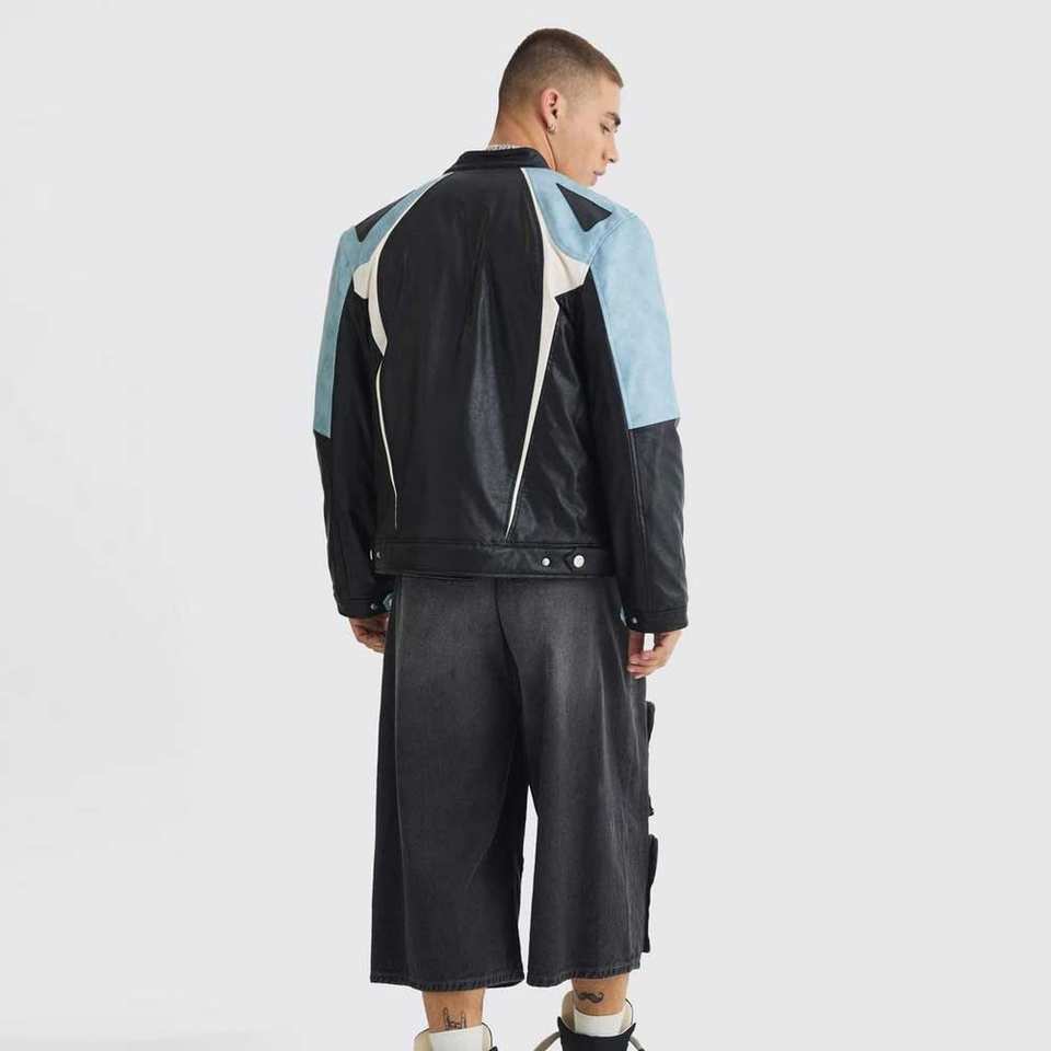 แจ็กเก็ตหนังผู้ชายสีทึบขนาดปกติปกตั้งและกระเป๋าข้างแจ็คเก็ตฤดูหนาวออนไลน์