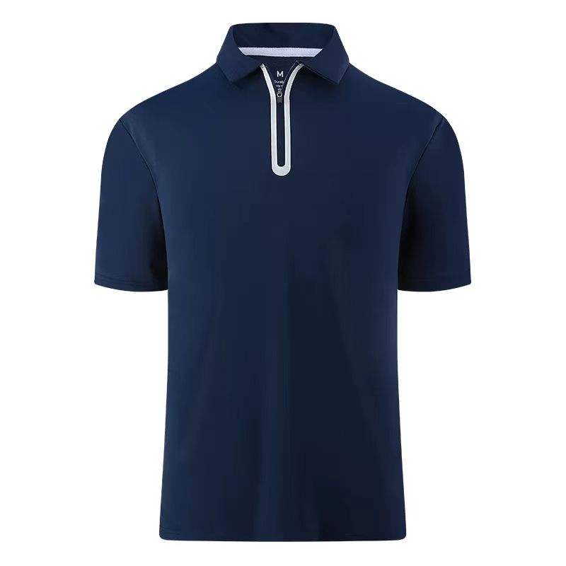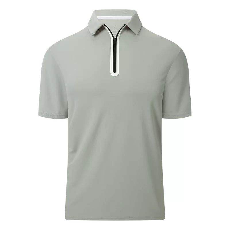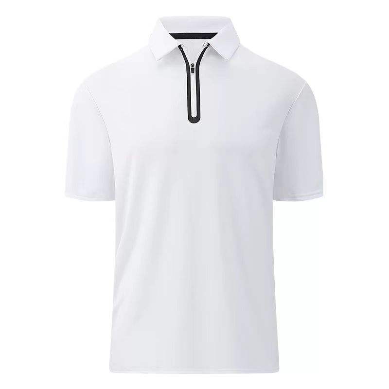 เสื้อโปโลกอล์ฟแขนสั้นผู้ชาย, สีพื้นเสื้อโปโลแห้งเร็วเสื้อยืดลำลองพิมพ์ลายมีปกซิปดูดซับเหงื่อเสื้อโปโล