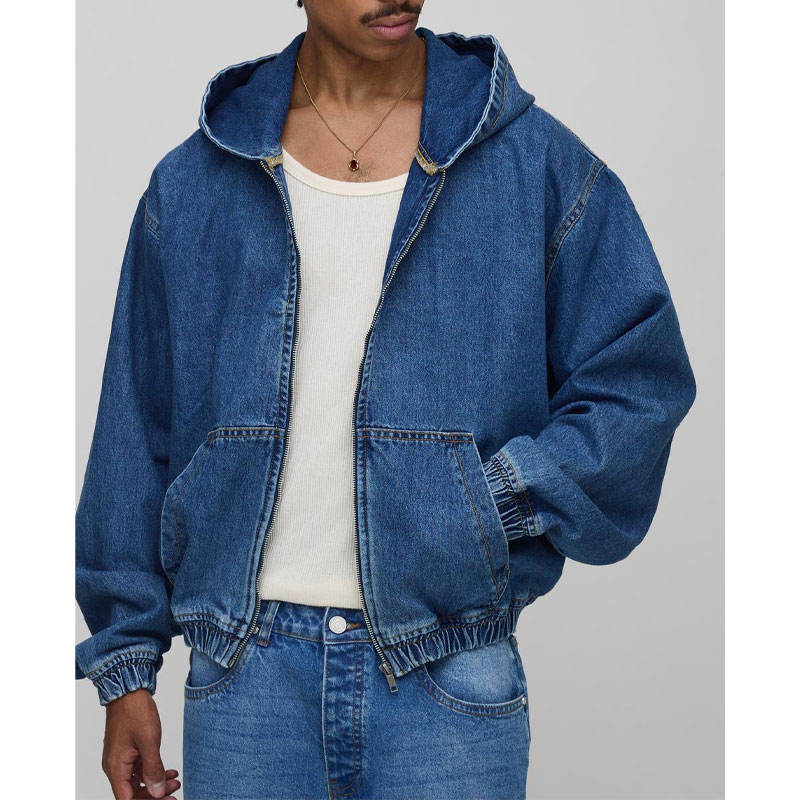 แจ็กเก็ตยีนส์ฟอกสีทึบของผู้ชายแจ็กเก็ตยีนส์ลำลองแฟชั่นสำหรับสวมใส่ทุกวัน