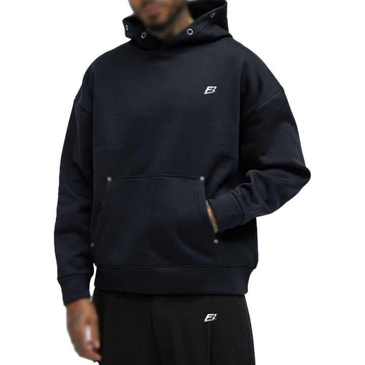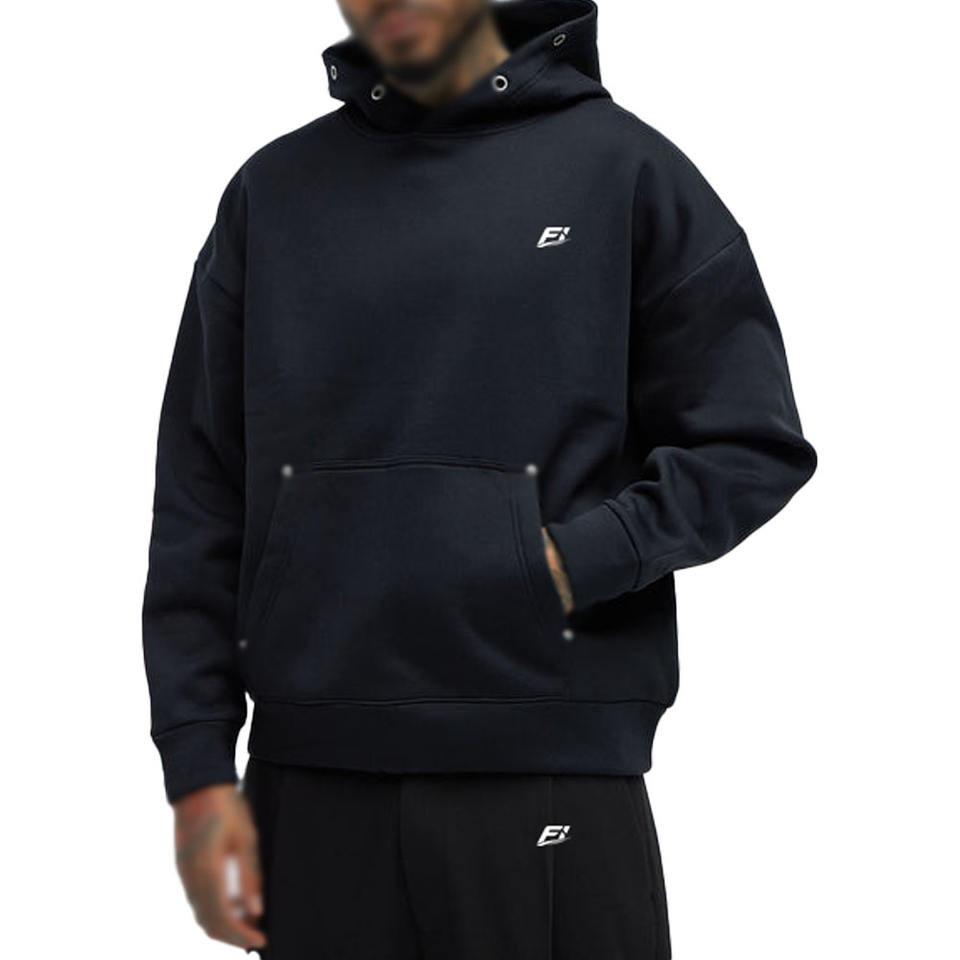 เสื้อฮู้ดดี้ผ้าฝ้ายฟลีซทรงโอเวอร์ไซส์สำหรับผู้ชาย โลโก้เรียบง่ายที่อก สำหรับการผลิตแบบ OEM และ Private Label