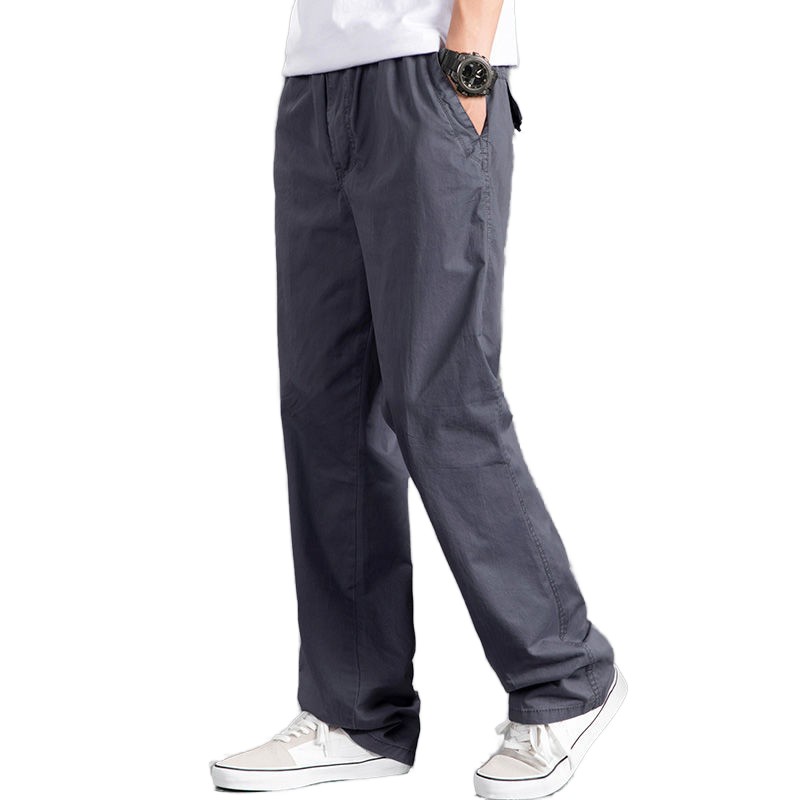 กางเกงคาร์โก้สีทึบทรงหลวมสำหรับผู้ชายชุดทำงานลำลองผ้าคอตตอนทรงหลวมสีดำฟอกสีเข้ม