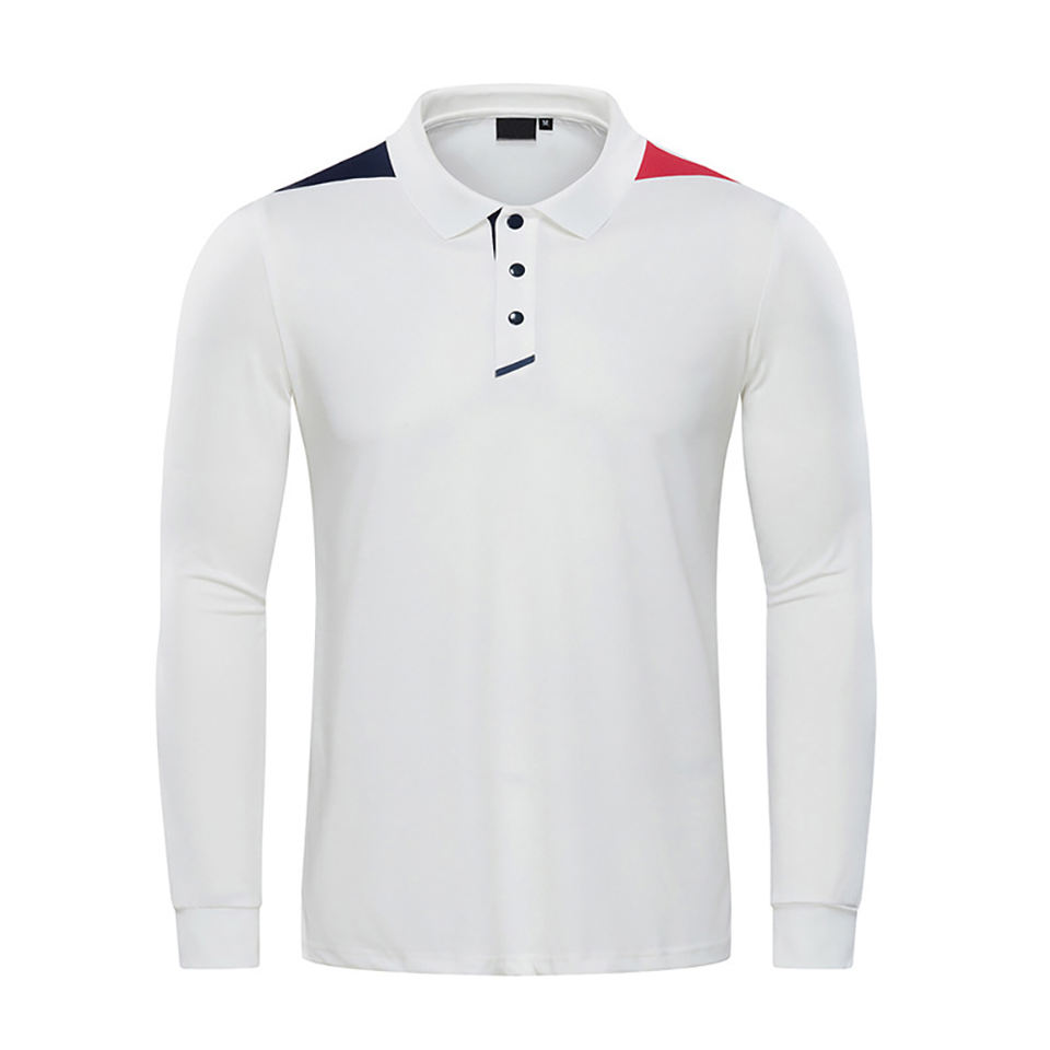 เสื้อโปโลแขนยาวผู้ชายสำหรับกิจกรรมกลางแจ้ง ผลิตจากโพลีเอสเตอร์ผสมอีลาสเทน ยืดหยุ่น ระบายอากาศได้ดี เหมาะสำหรับกอล์ฟ ปักโลโก้ ติดกระดุม