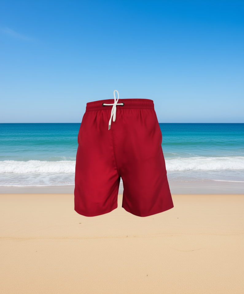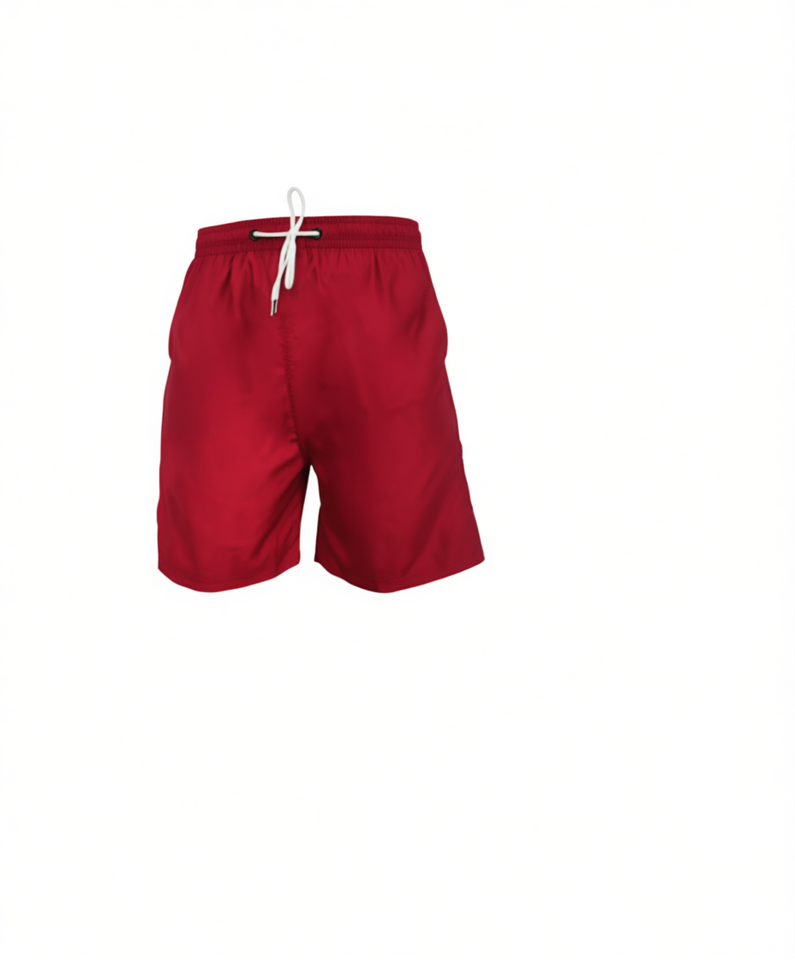กางเกงขาสั้นผู้ชายสีแดงล้วน มีเชือกผูกเอว ทรงลำลอง ผ้าทอ