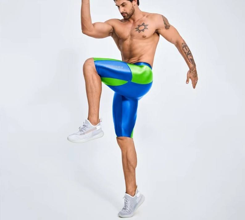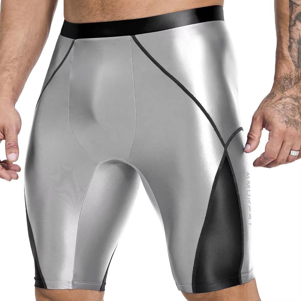 กางเกงเลกกิ้งผู้ชาย ผ้าสแปนเด็กซ์/โพลีเอสเตอร์ ลายเรียบ เงา ป้องกันรังสียูวี เอวยืดหยุ่น ความยาวระดับเข่า สไตล์ลำลอง สำหรับเล่นกีฬา ระบายอากาศได้ดี