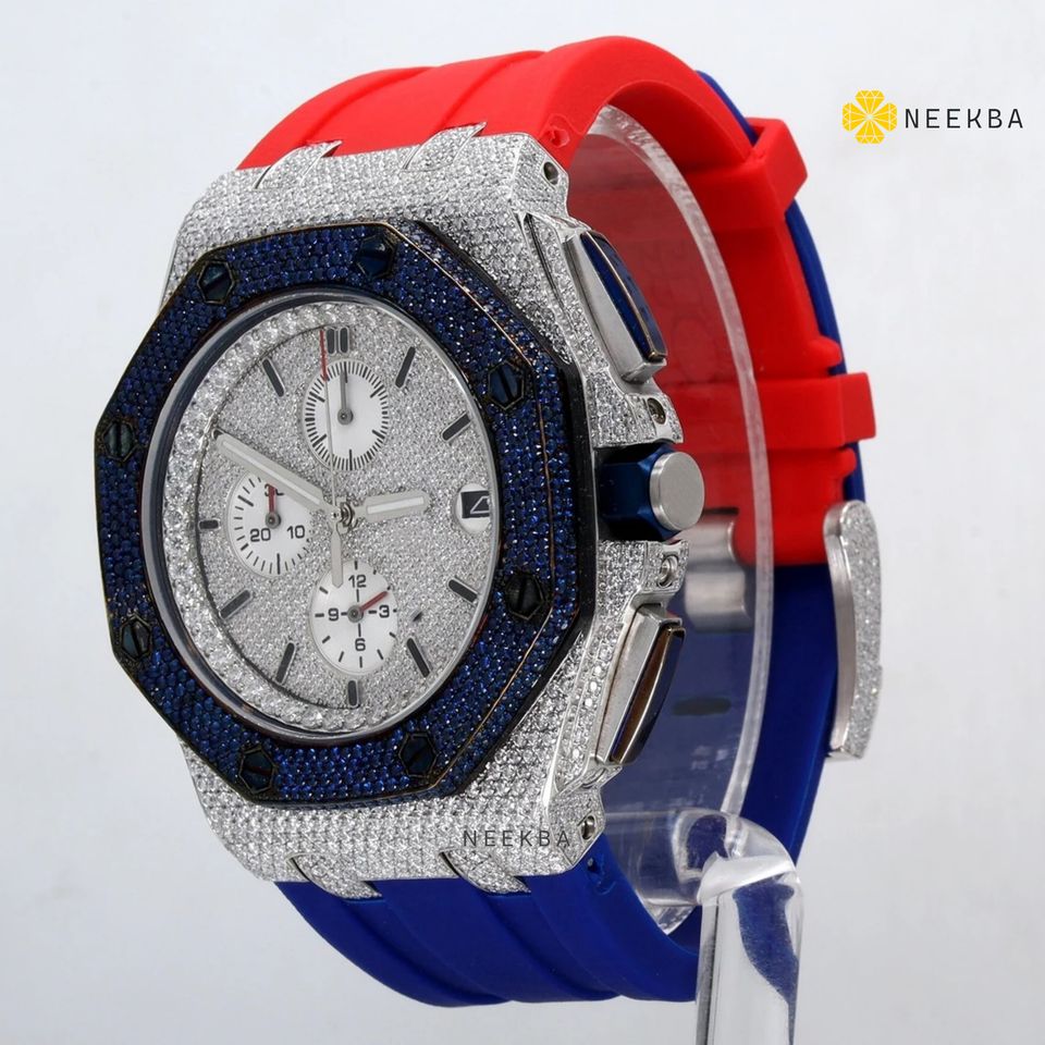 นาฬิกาข้อมือสายยางประดับมอยส์ซาไนต์