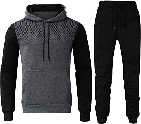 ชุดวอร์มกีฬาผู้ชาย ชุดออกกำลังกายกลางแจ้ง ชุดฟิตเนส ชุดวิ่งจ๊อกกิ้ง เสื้อฮู้ดดี้ กางเกงเอวยางยืด โลโก้ด้านหน้า ลายเรียบ ชุดสองชิ้น