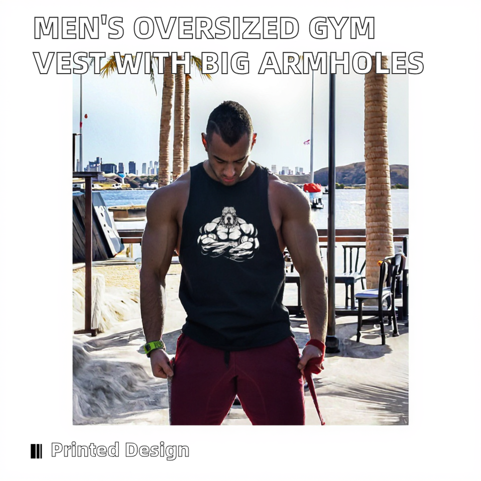 เสื้อกล้ามออกกำลังกายผู้ชายดีไซน์ใหม่ทรงโอเวอร์ไซส์ แขนกว้าง ข้างเปิด ระบายอากาศได้ดี ผ้าถักแบบวอช