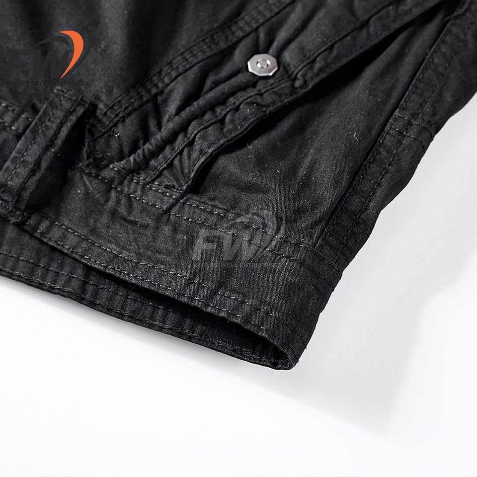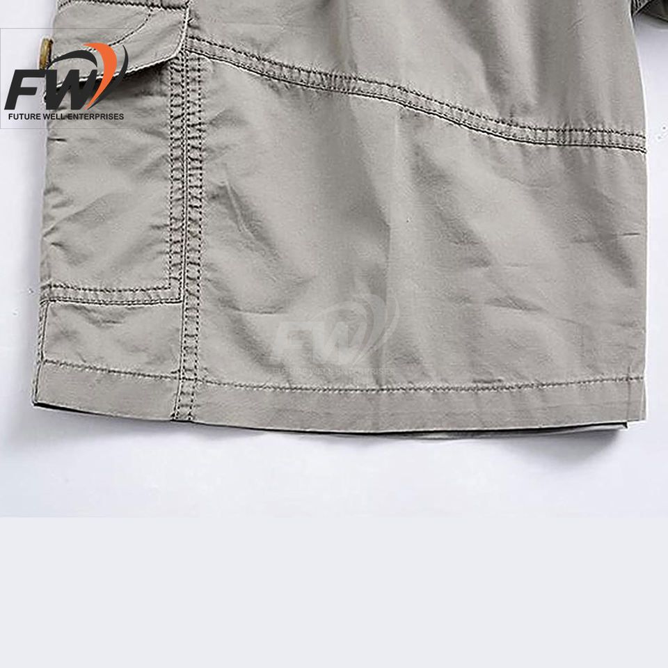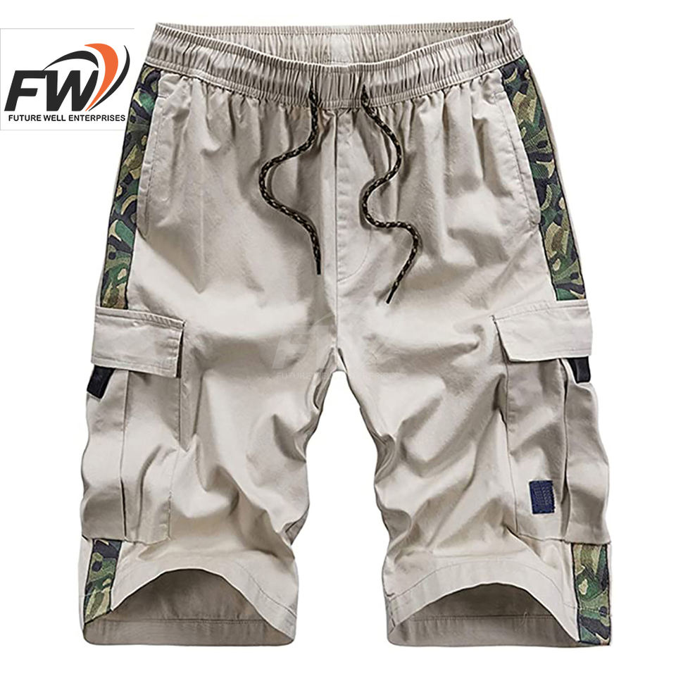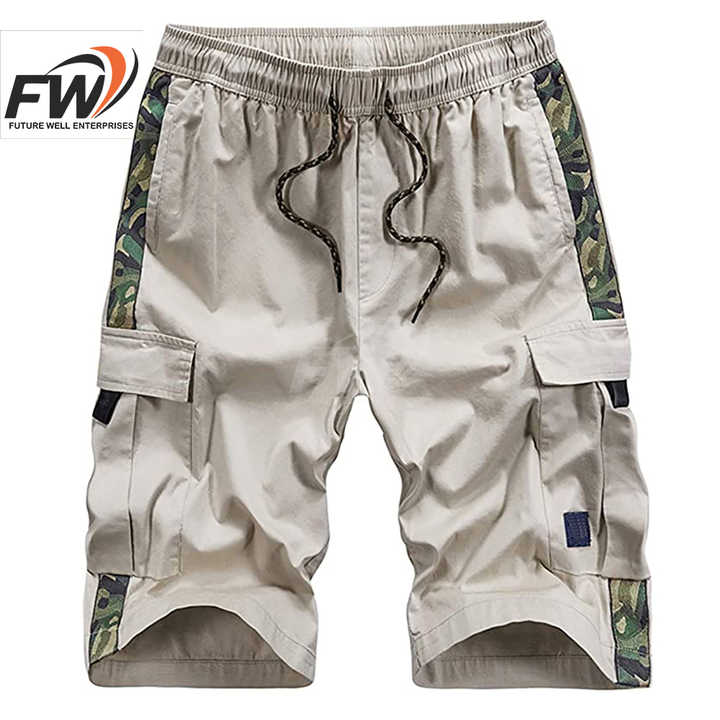 กางเกงขาสั้นคาร์โก้ผู้ชายสไตล์สปอร์ตกลางแจ้ง ผ้าฝ้าย 100% ลายพราง หนัง แต่งซิป เอวสูง - แบรนด์ส่วนตัว
