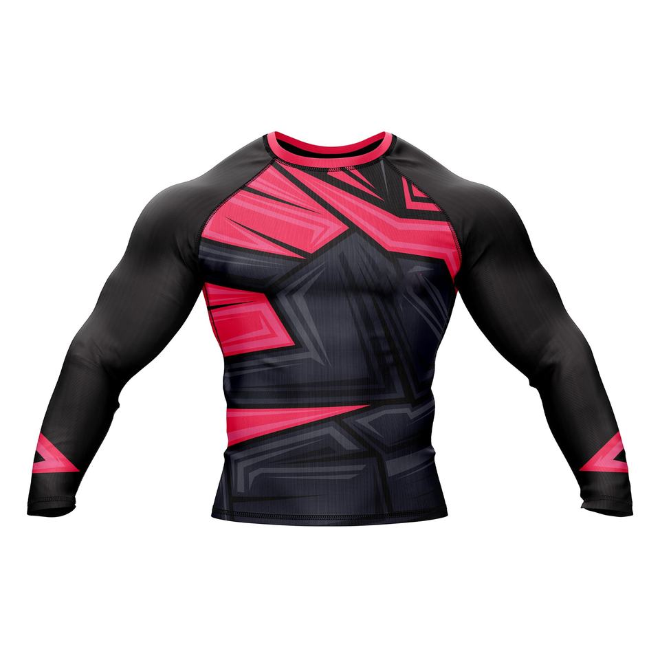 เสื้อรัดรูปแขนยาวสำหรับผู้ชาย สไตล์สปอร์ต UPF50+ ป้องกันแสงแดด ออกแบบโลโก้ได้ตามต้องการ พิมพ์ลายเต็มตัว แบรนด์ MMA BJJ แบบซับลิเมชั่น