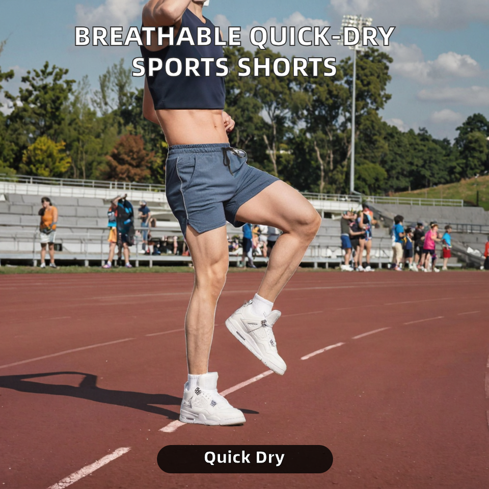 กางเกงกีฬาขาสั้นสำหรับผู้ชายกางเกงขาสั้นสำหรับวิ่งวิ่งออกกำลังกายแบบตาข่ายระบายอากาศแห้งเร็วสีเข้ากันกับฟิตเนสลำลองลายร้อนโพลีเอสเตอร์