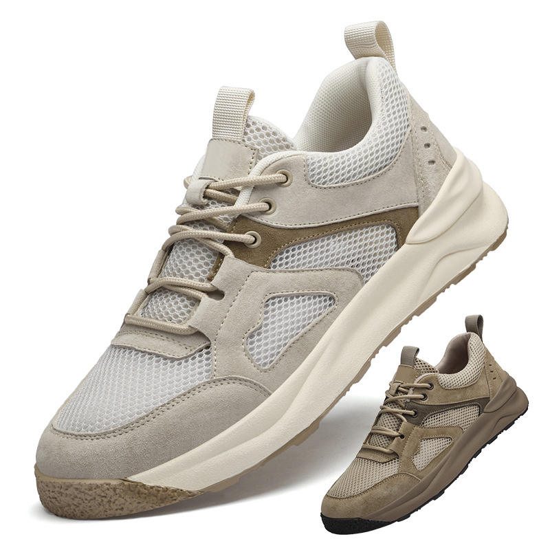 รองเท้าวิ่งผู้ชายสำหรับฤดูใบไม้ผลิ/ฤดูใบไม้ร่วง น้ำหนักเบา ระบายอากาศได้ดี พื้นบาง หนังแท้ ตาข่าย สีพื้น ลำลอง