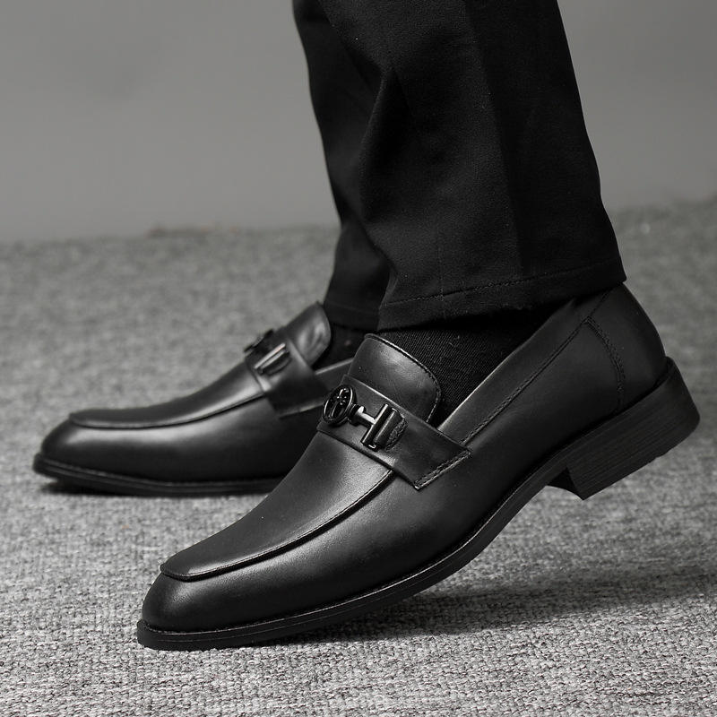 รองเท้าหนังผู้ชายสไตล์ลำลองแบบธุรกิจสไตล์อังกฤษ สีพื้น ระบายอากาศได้ดี แบบสวม ทรงเตี้ย สไตล์เกาหลี ทันสมัย เหมาะสำหรับใส่ทำงานและในชีวิตประจำวัน