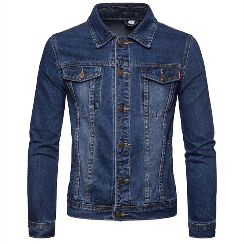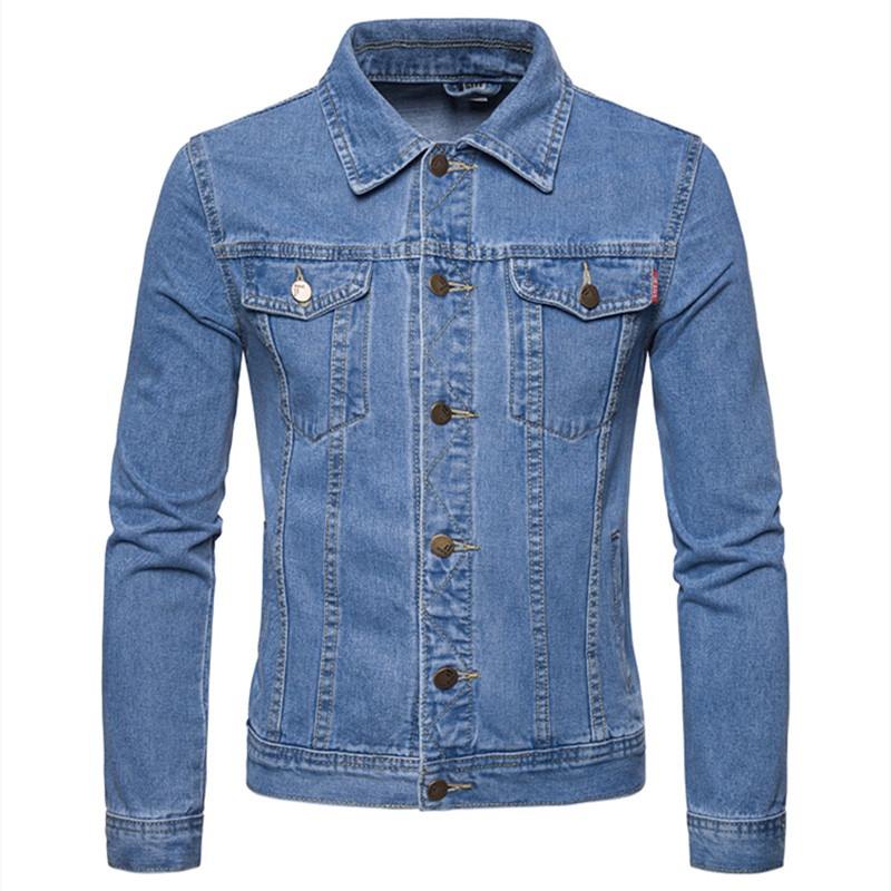 แจ็กเก็ตยีนส์สำหรับผู้ชายเสื้อแจ็กเก็ตผ้ายีนส์5XL บอมเบอร์ดีไซน์เข้ารูปลำลองสีพื้นสำหรับฤดูใบไม้ผลิ
