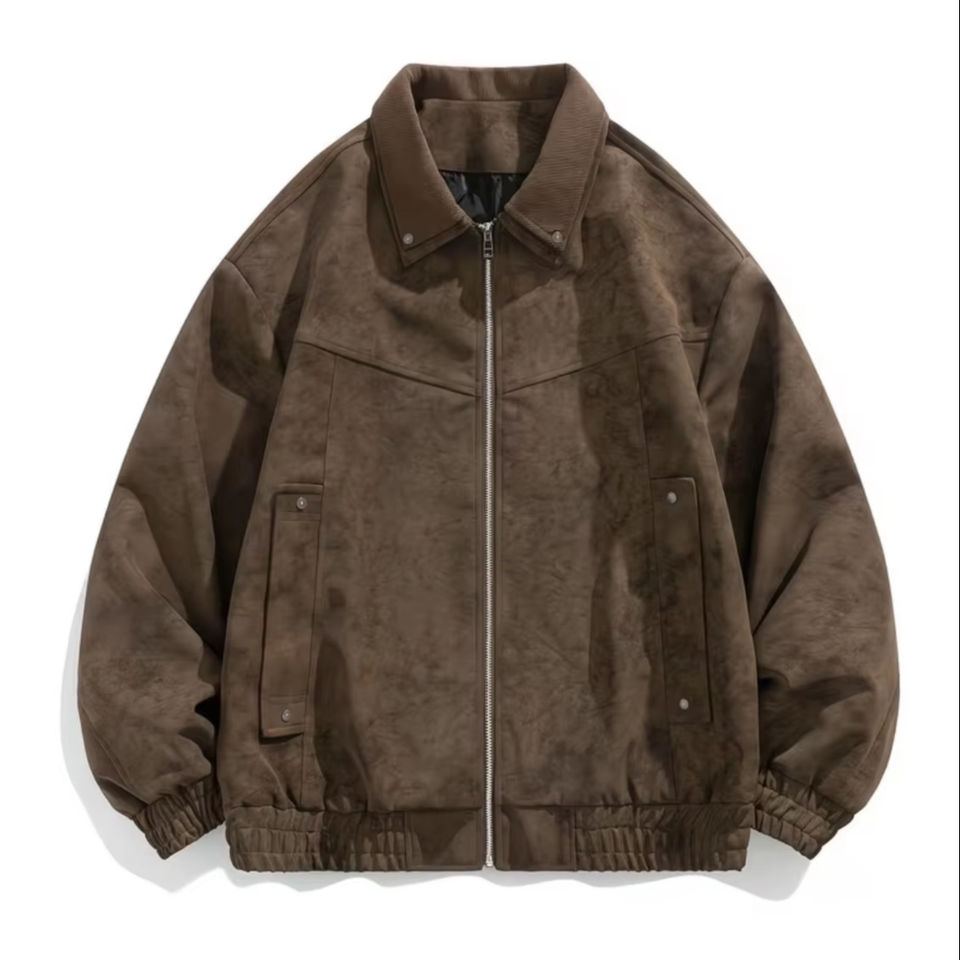 เสื้อแจ็คเก็ตมอเตอร์ไซค์ผู้ชายสไตล์เรโทรสีน้ำตาลกาแฟ ผ้าหนังกลับ สำหรับฤดูใบไม้ผลิและฤดูใบไม้ร่วง กันน้ำ ระบายอากาศ กันลม