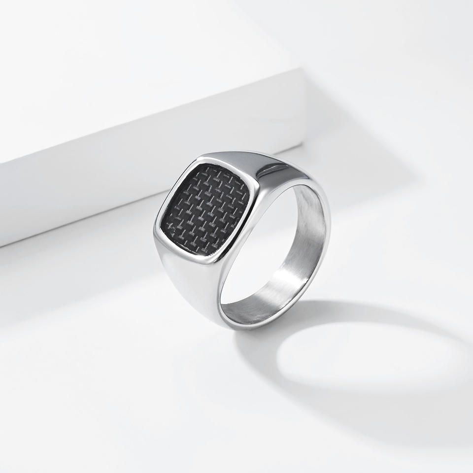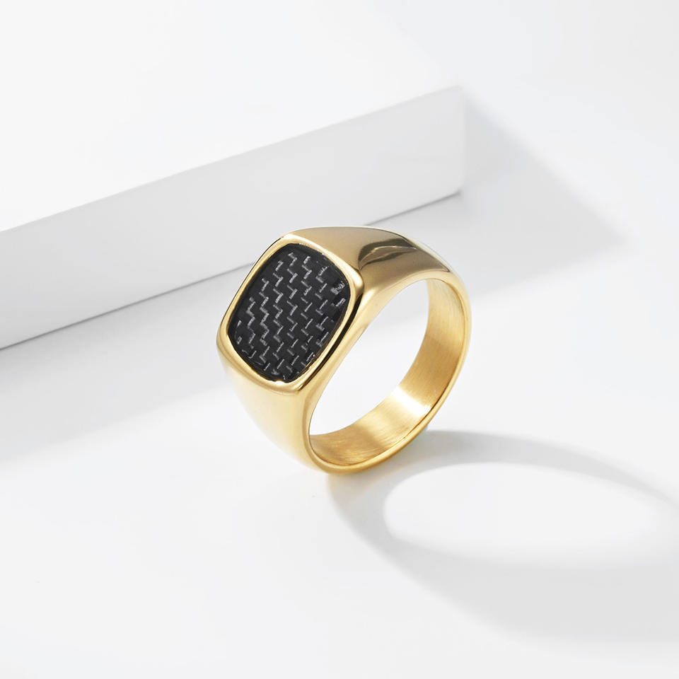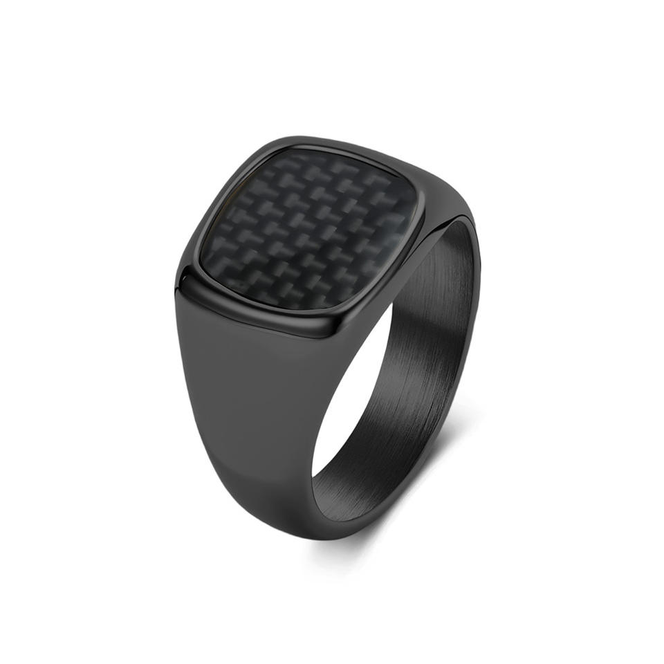 แหวนคาร์บอนไฟเบอร์ทรงสี่เหลี่ยมสำหรับผู้ชาย ไทเทเนียมสตีล สีทอง สีดำ สีเงิน สไตล์เรขาคณิต ของขวัญเครื่องประดับ