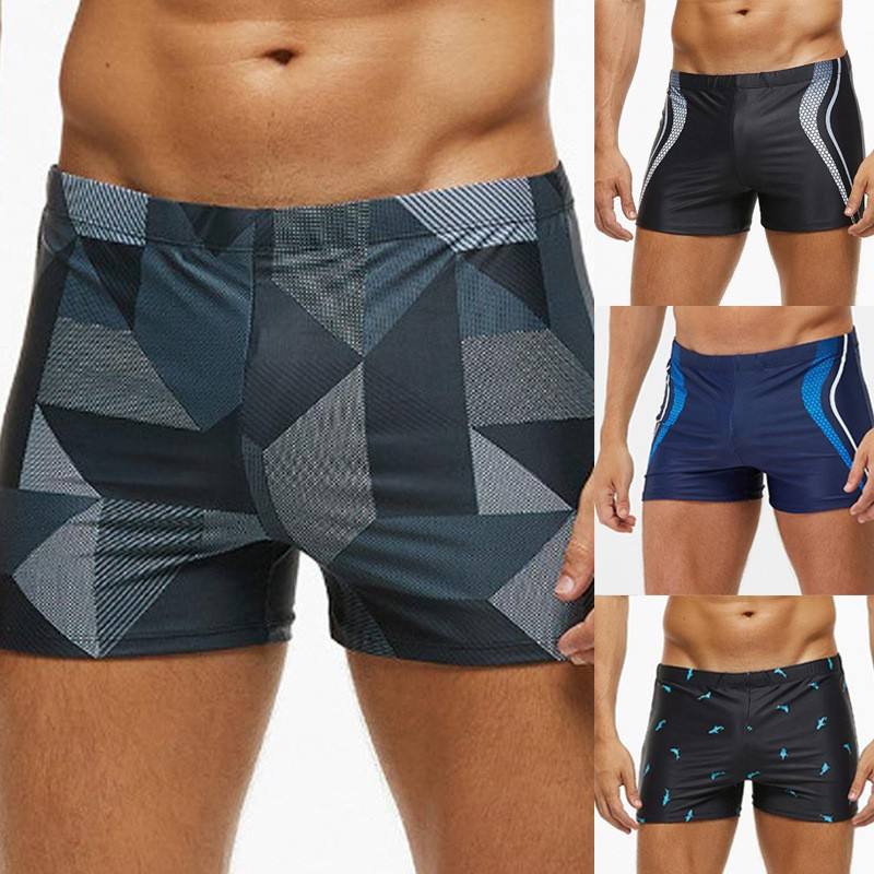 Mens Square Leg Swim Briefs Athletic Quick-Dry Swim Trunks Regular Fit 1-Piece Print Swimming Shorts for Training