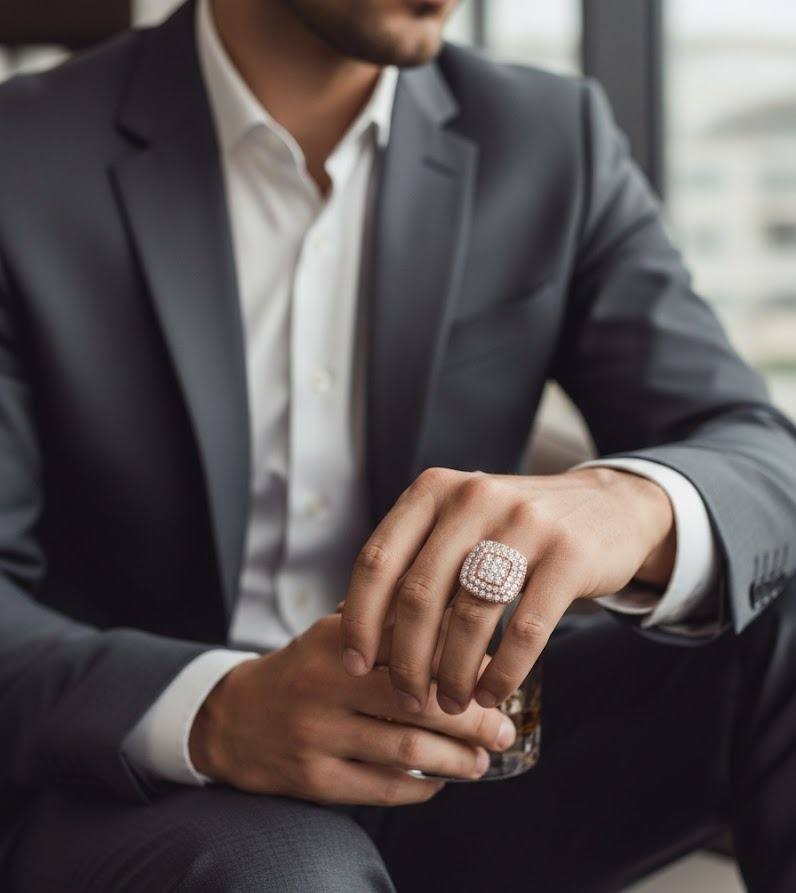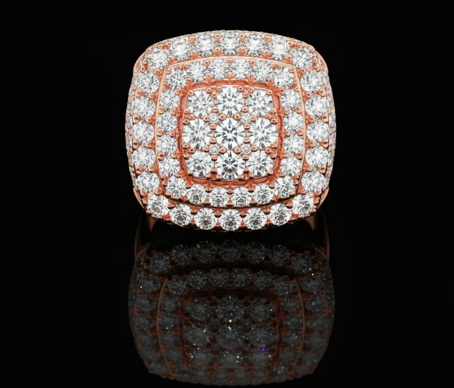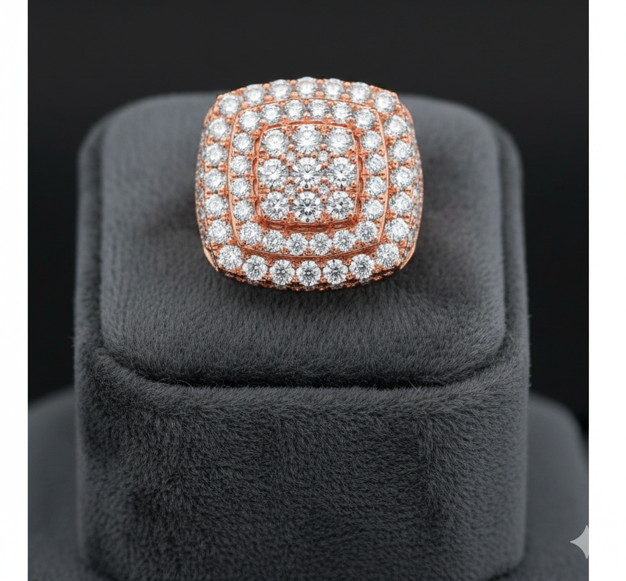 แหวนฮิปฮอปทรงสี่เหลี่ยมสีโรสโกลด์สำหรับผู้ชาย ประดับเพชรแบบ Iced Out ทำจากเงินแท้ 925 หรือเคลือบทอง 10K 14K แหวนสไตล์สตรีทแวร์