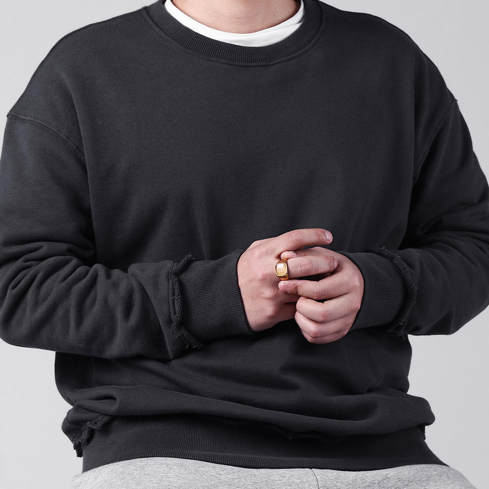 แหวนเหล็กไทเทเนียมทรงสี่เหลี่ยมสำหรับผู้ชาย ประดับไม้ ชุบทอง เครื่องประดับแฟชั่น