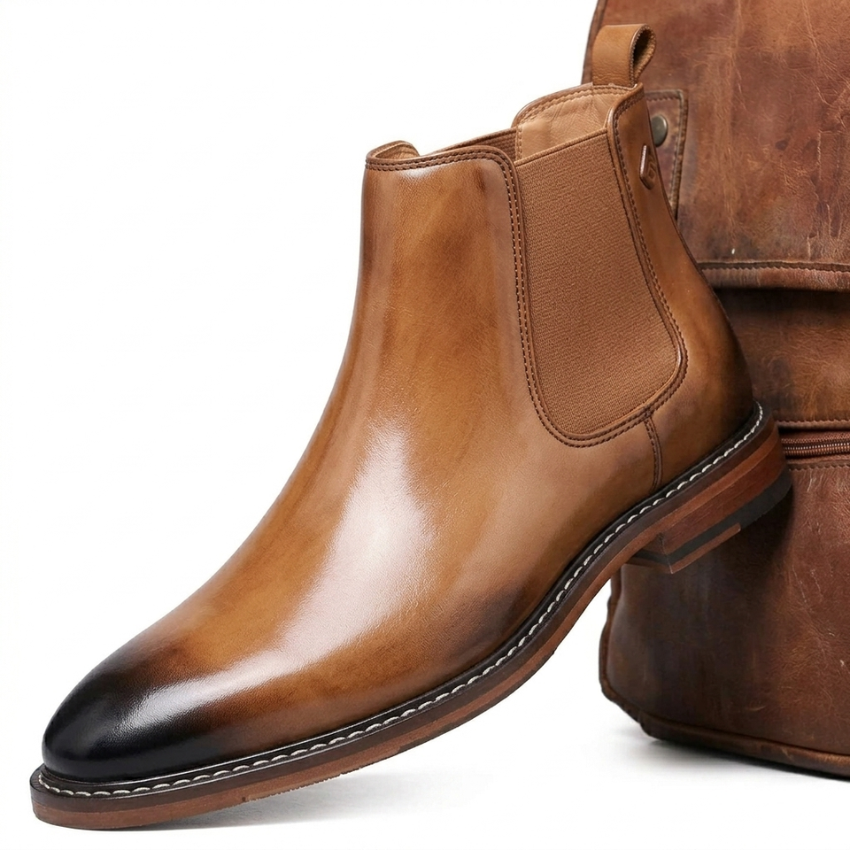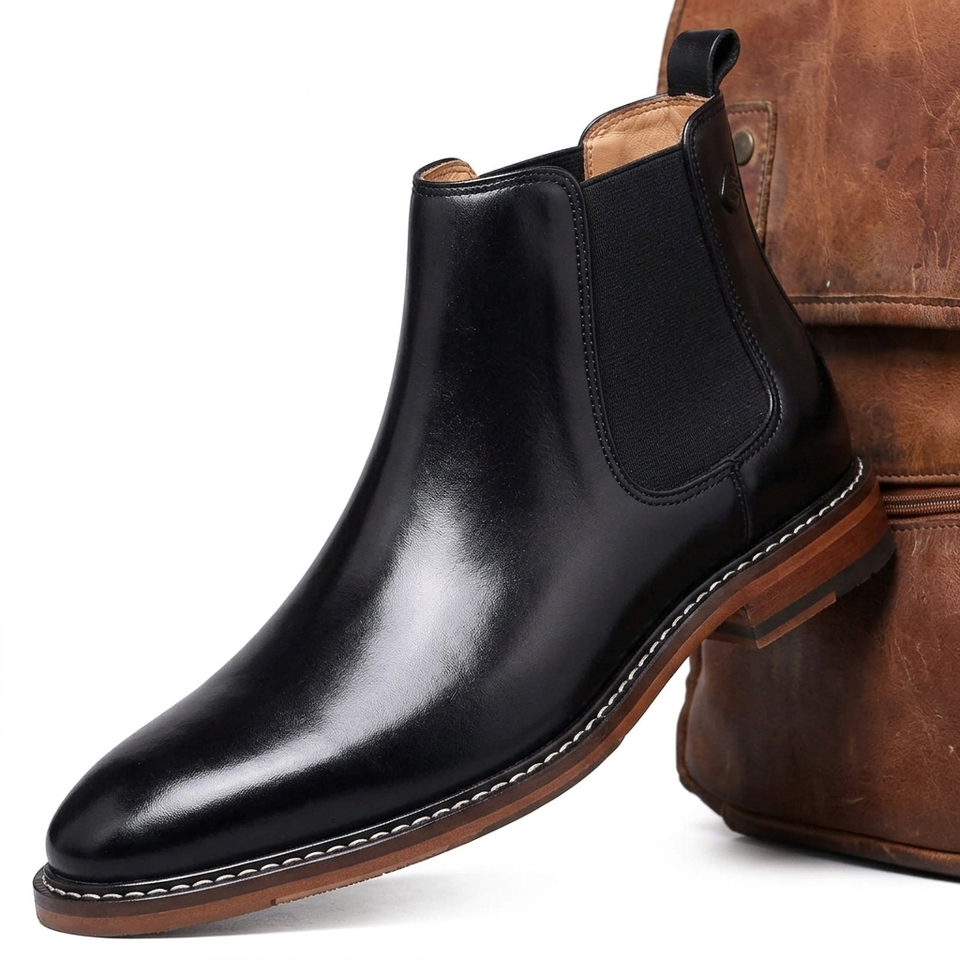 รองเท้าบูทคาวบอยทรงเหลี่ยมสำหรับผู้ชาย พื้นยางนุ่มกันลื่น สไตล์ลำลองย้อนยุค
