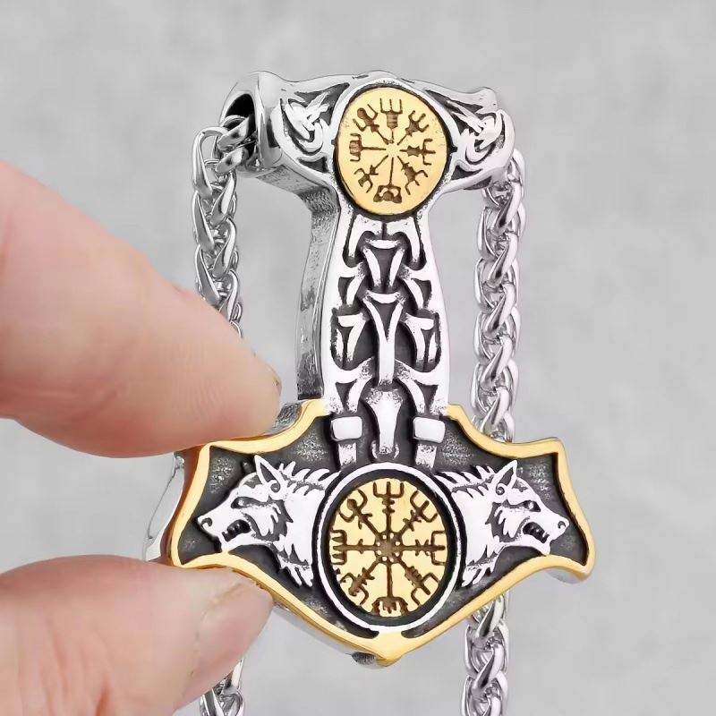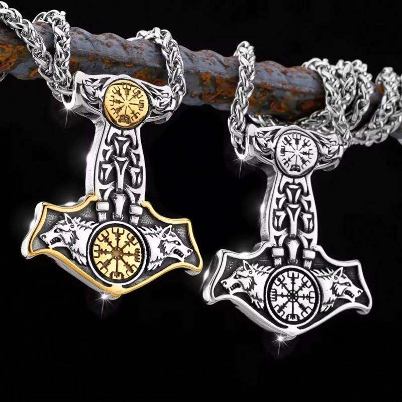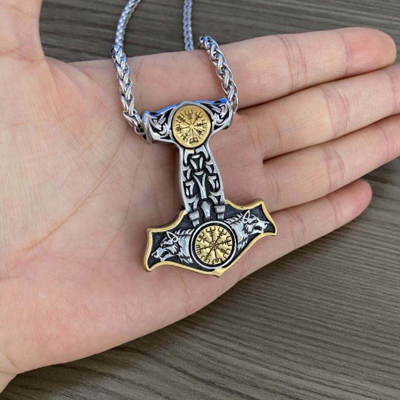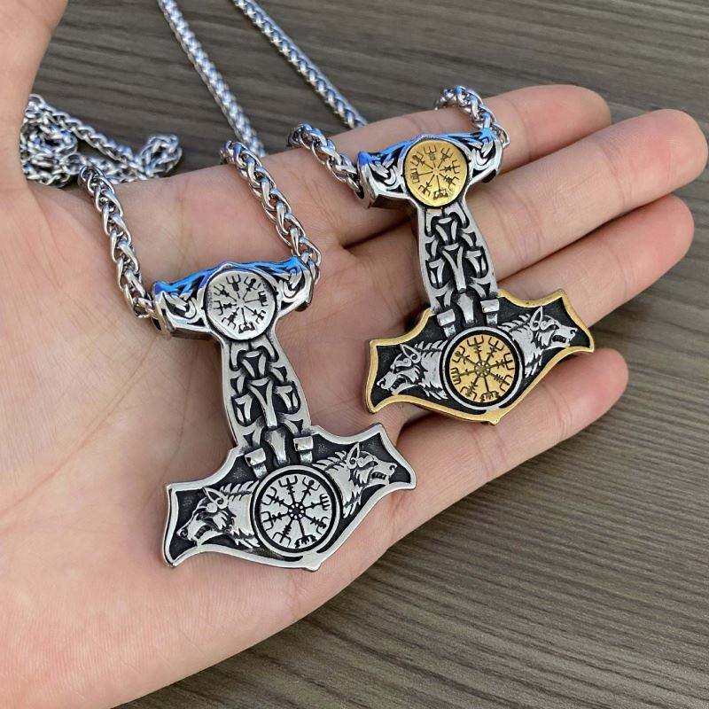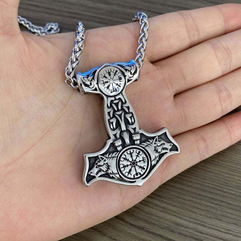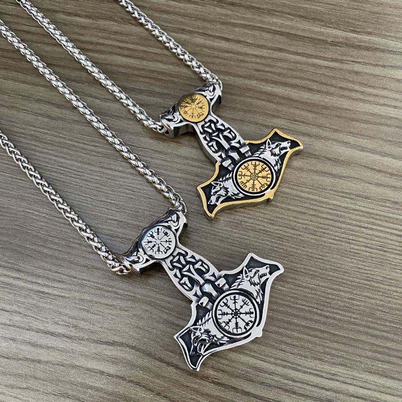 Men's Stainless Steel Fashion Jewelry Thor's Hammer Mjolnir Necklace Hip Hop Wolf Head Pendant Necklace Vintage Jewelry