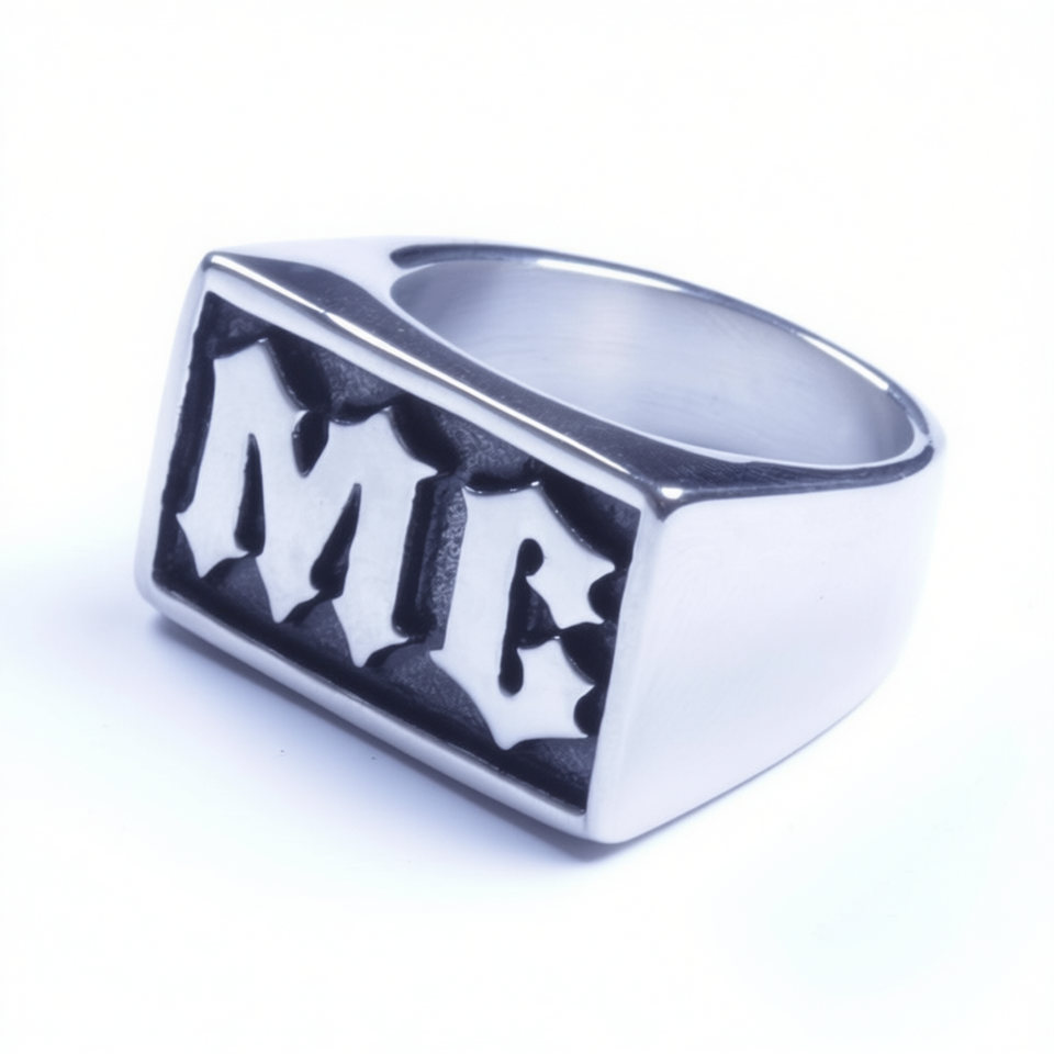แหวนไบเกอร์เริ่มต้นสำหรับผู้ชายทำจากสแตนเลสขนาด8-14 SR82ตัวอักษรเริ่มต้น