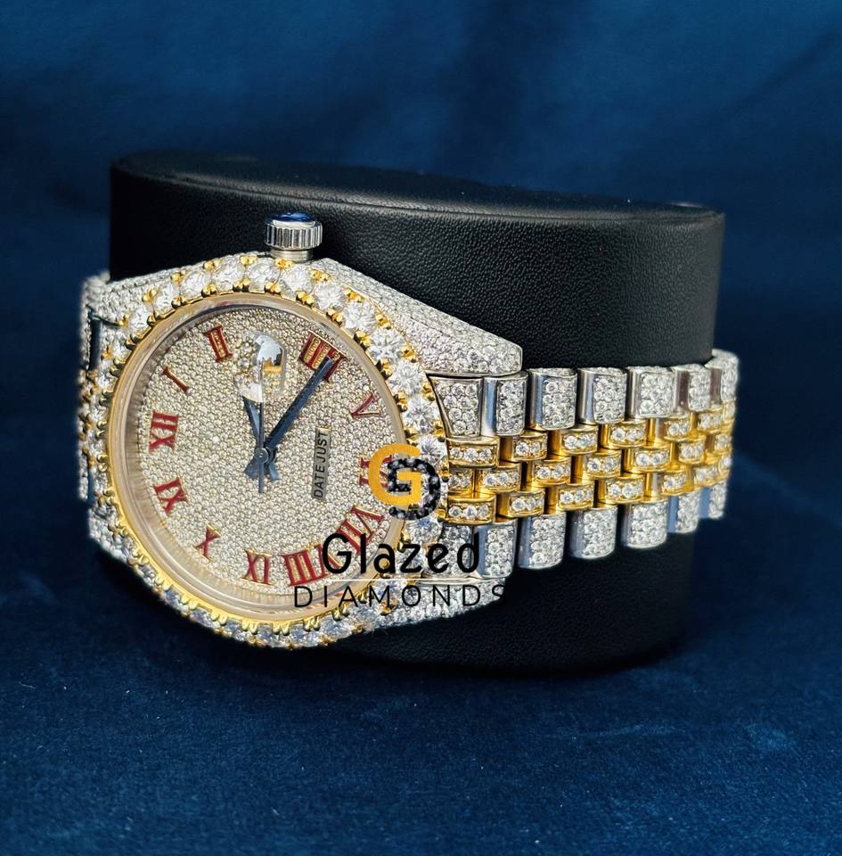 นาฬิกาข้อมือผู้ชายสแตนเลสสตีล ระบบจักรกล ประดับเพชรโมอิสซาไนต์เต็มหน้าปัด พร้อมหน้าปัดแบบอนาล็อก