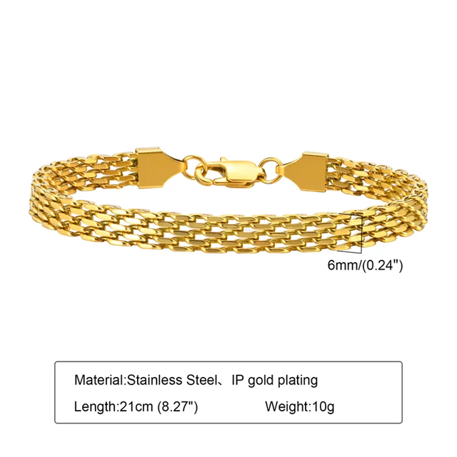สร้อยข้อมือสแตนเลสป้องกันการเสื่อมเสียของผู้ชายเครื่องประดับชุบทองพร้อมดีไซน์ถักสีทองป้องกันการเสื่อมเสียใหม่สีเงิน