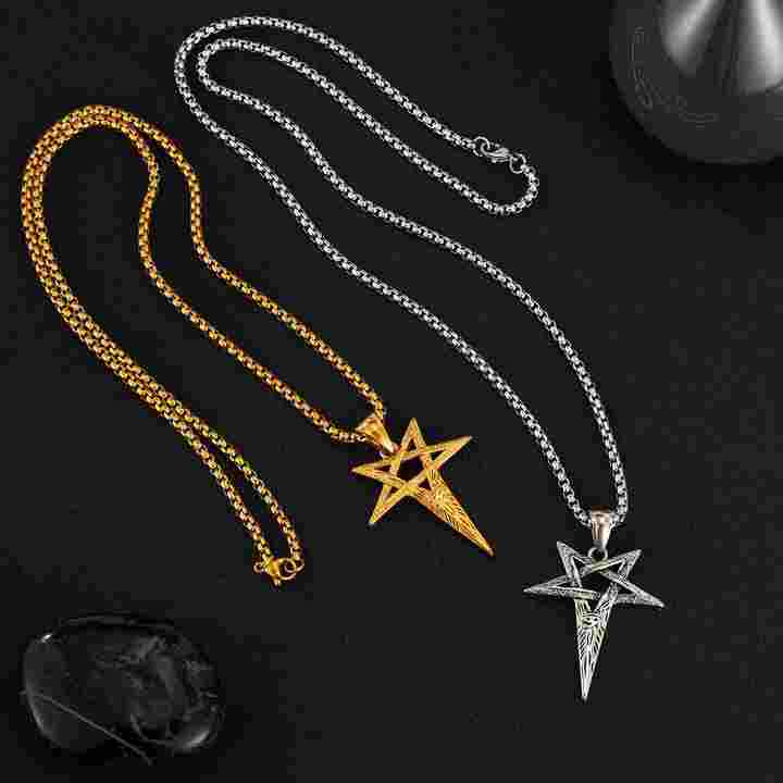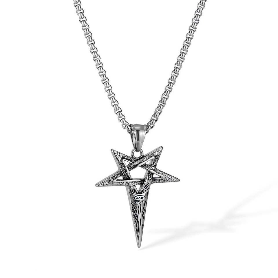 สร้อยคอสแตนเลสสำหรับผู้ชายจี้รูปดาวห้าแฉกเครื่องประดับแฟชั่นวินเทจของขวัญสำหรับนักขี่จักรยานอุปกรณ์สำหรับผู้ชายขายส่ง