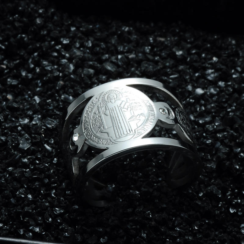 แหวนสแตนเลสสตีลหนาสำหรับผู้ชายแหวนแบบเปิดสำหรับงานแต่งงานและงานเลี้ยง