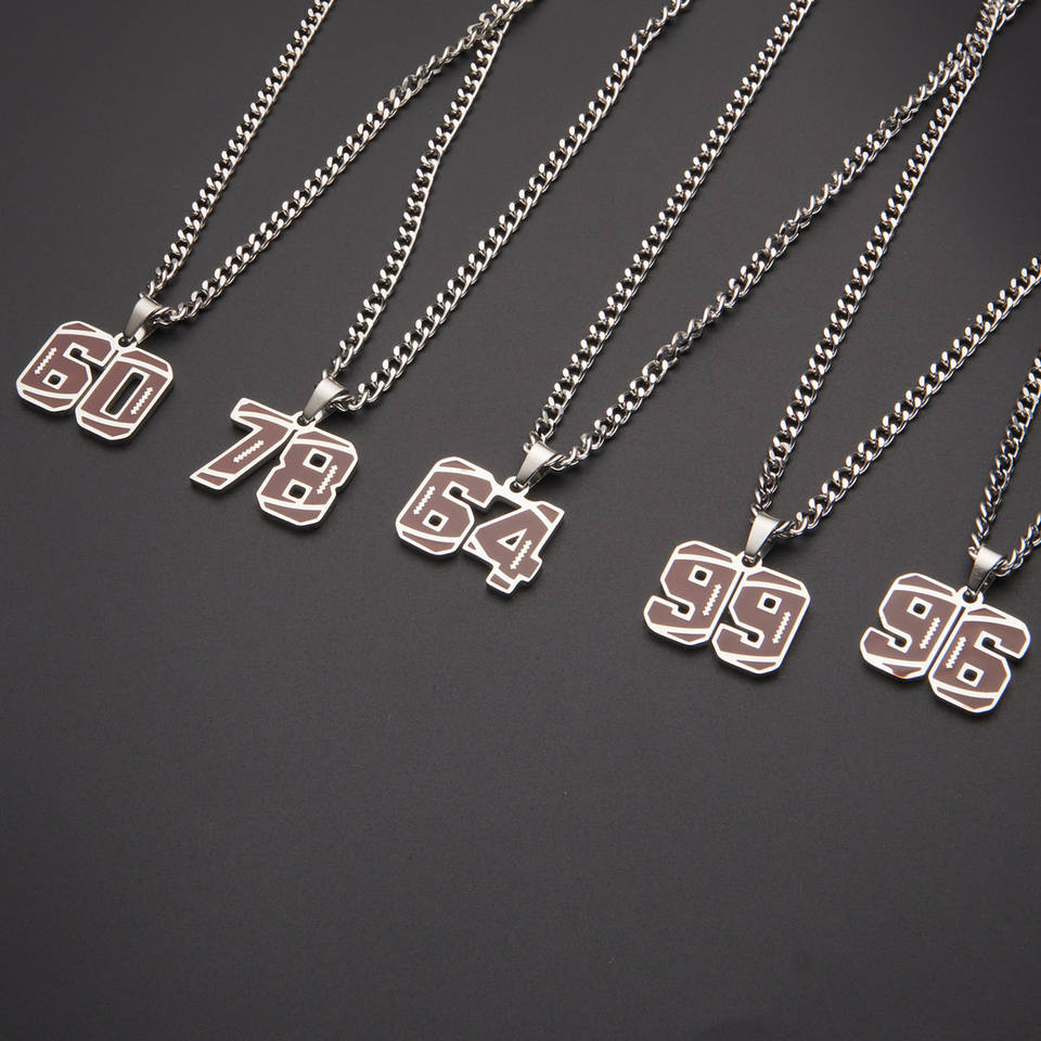 Men's Stainless Steel Sports Digital Necklace Athletes-Inspired Jewelry Pendants for Baseball Football-Fashionable for Children