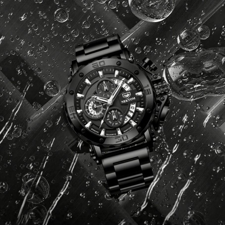 นาฬิกาควอทซ์แฟชั่นสายสแตนเลสสำหรับผู้ชาย หน้าปัดกระจก 44 มม. เข็มเรืองแสง