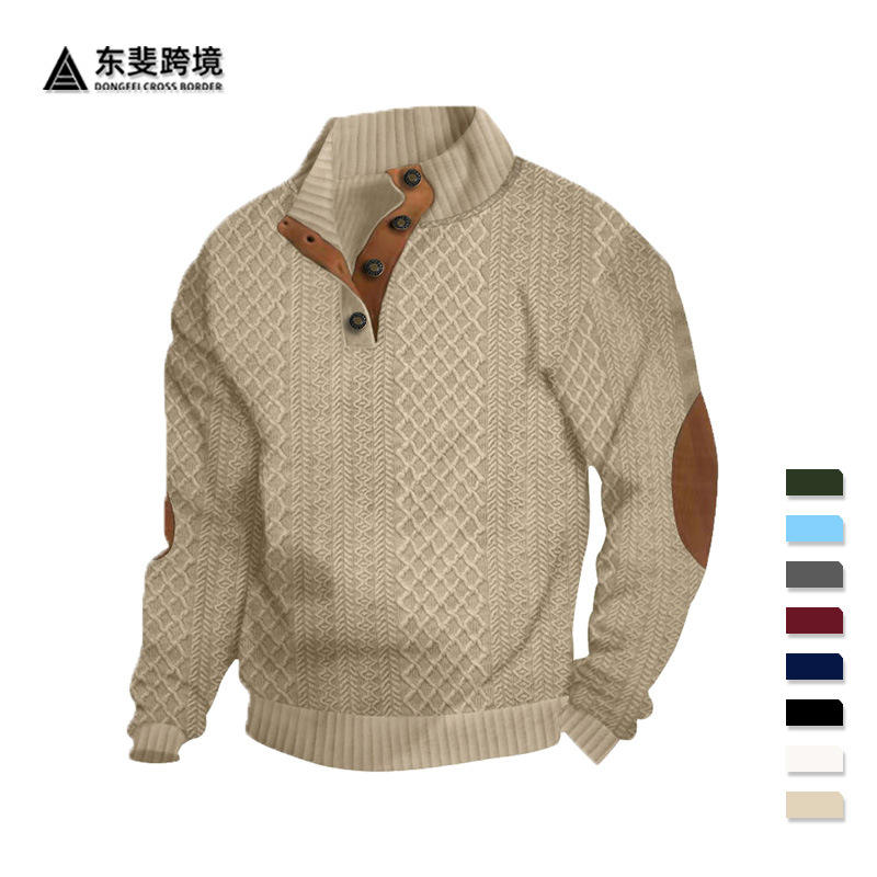เสื้อสเวตเตอร์คอตั้งแขนยาวผู้ชาย ผ้าถักลายแจ็คการ์ด สวมใส่สบายๆ สำหรับกิจกรรมกลางแจ้ง ป้องกันการเป็นขุย ผสมขนสัตว์ 71-80%