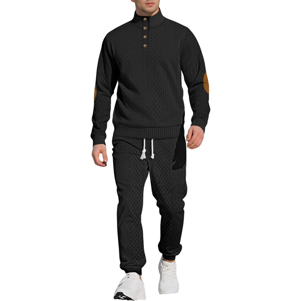 ชุดเสื้อแขนยาวคอตั้งและกางเกงขายาวสำหรับผู้ชาย เอวยางยืด แขนยาว ระบายอากาศได้ดี เหมาะสำหรับกีฬากลางแจ้ง ชุดลำลองลายแจ็คการ์ด